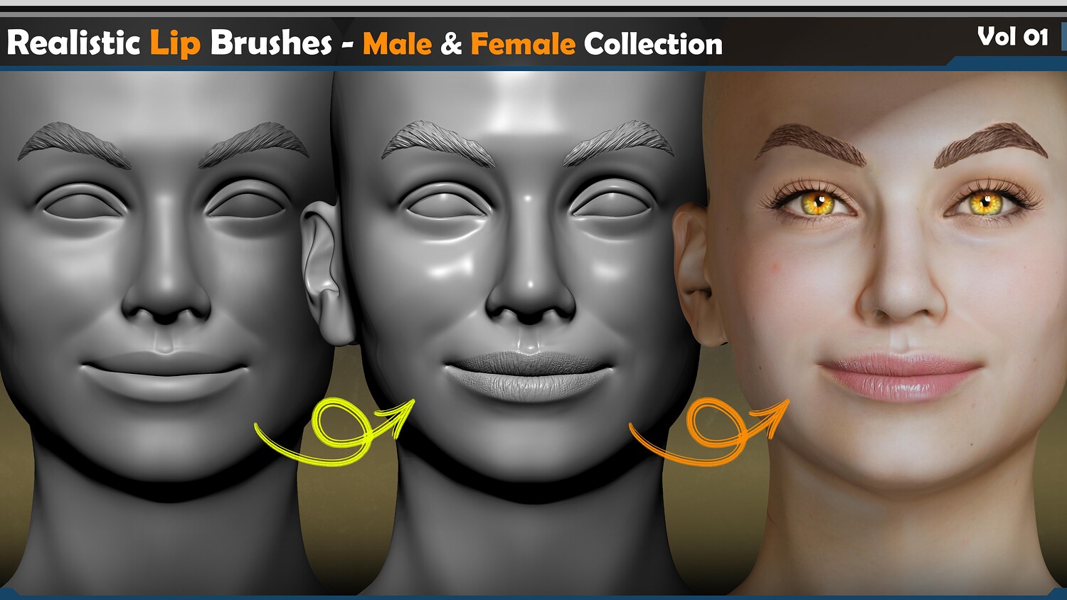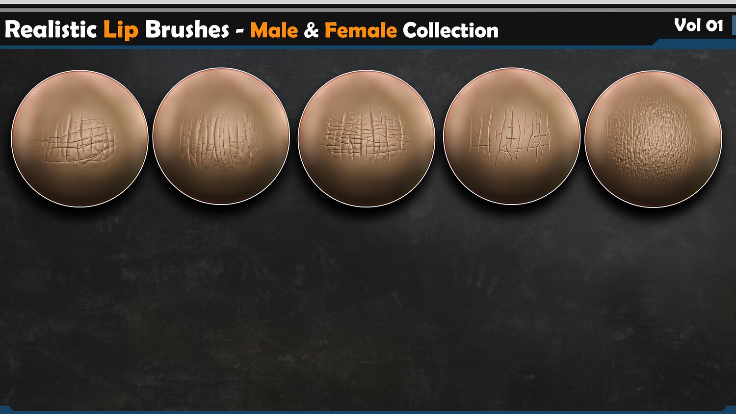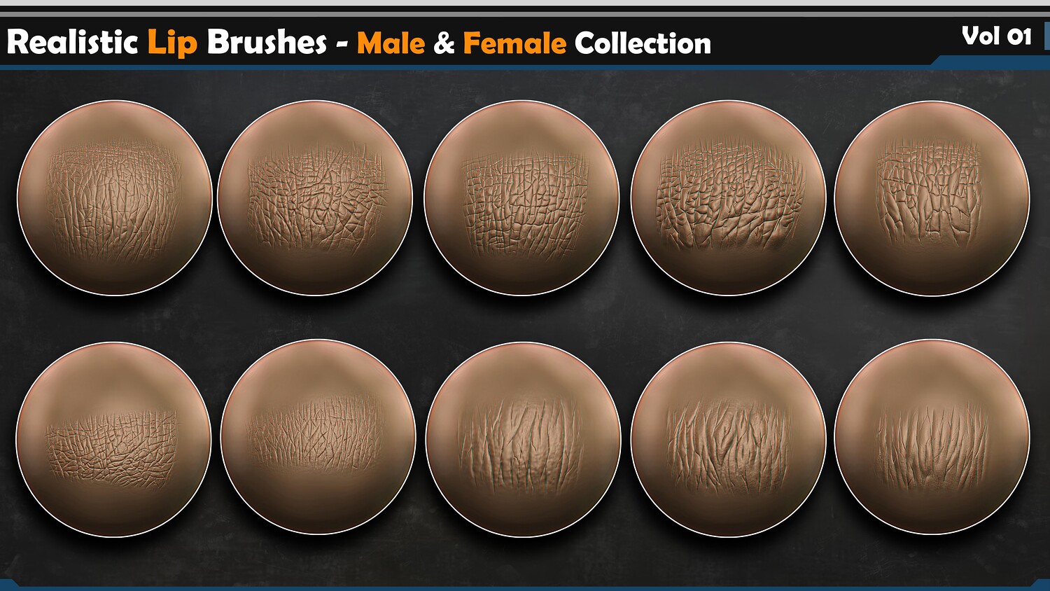 Main Features: - 15 Different Brushes: Various types for male lips (stronger contours), female lips (softer and glossy), and shared options. - Realistic Details: Based on real photos, adds natural skin folds and subtle features – great for close-up renders in games, films, or digital art.
