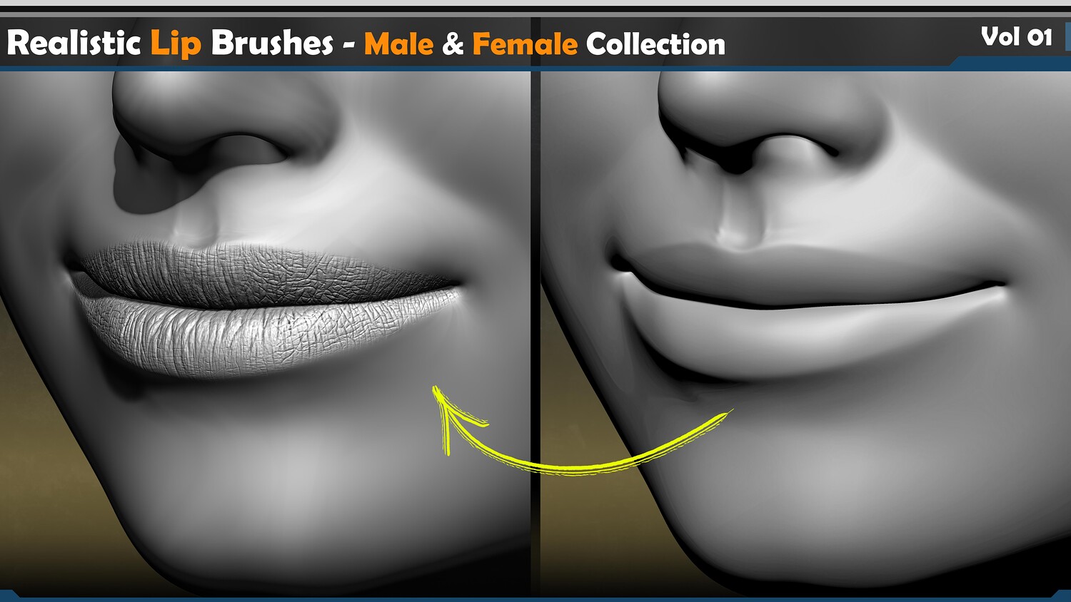 Add more realistic details to your male and female character sculpts with this pack of 15 high-quality lip texture brushes. Designed for ZBrush and Blender, these brushes bring natural lip details like fine wrinkles and shape variations to your 3D models.