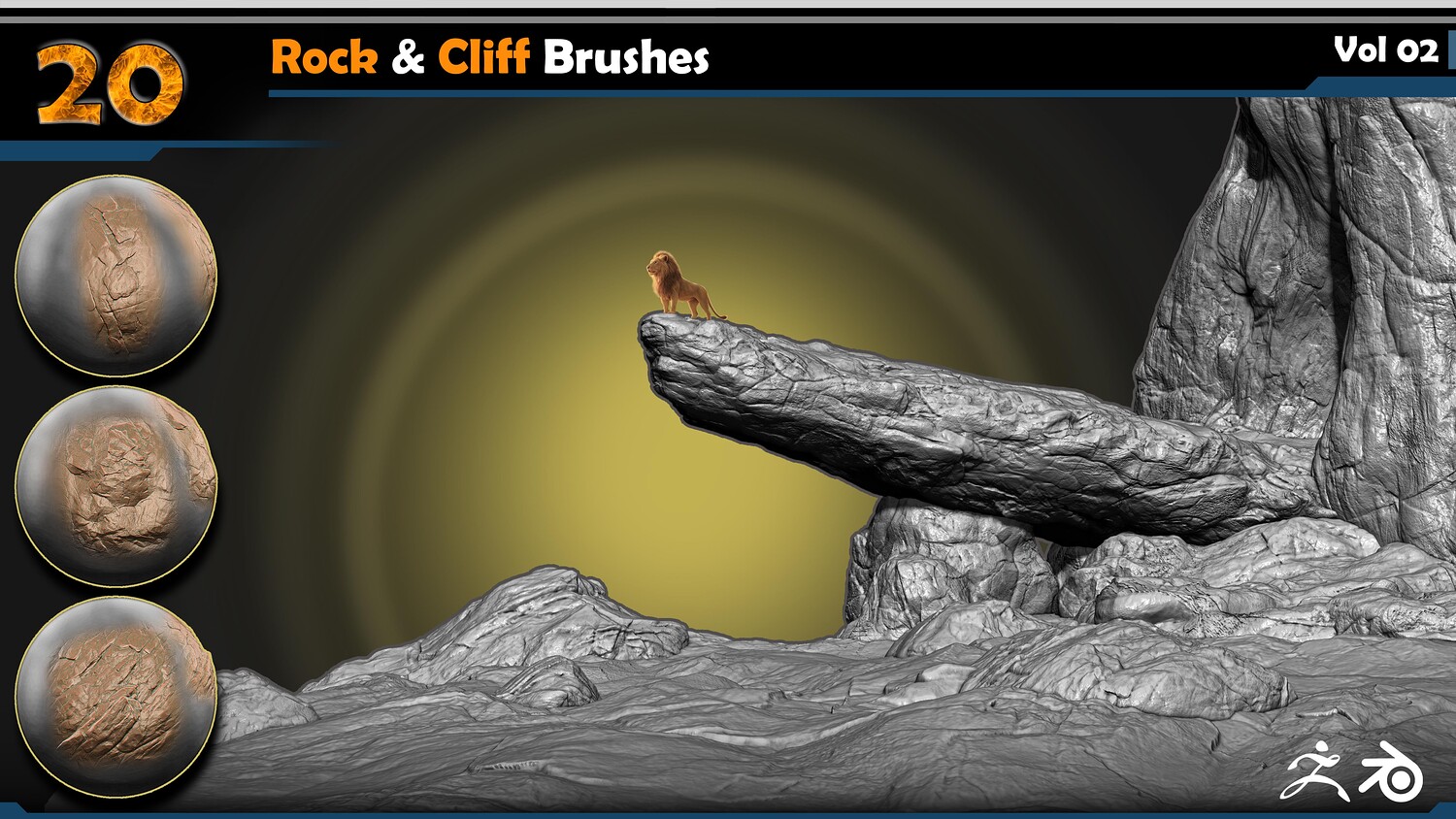 This Product include 20 Rock & Cliff Brushes | Vol.02 A premium collection of 20 high-quality ZBrush brushes for sculpting realistic rocks, cliffs, and natural formations.