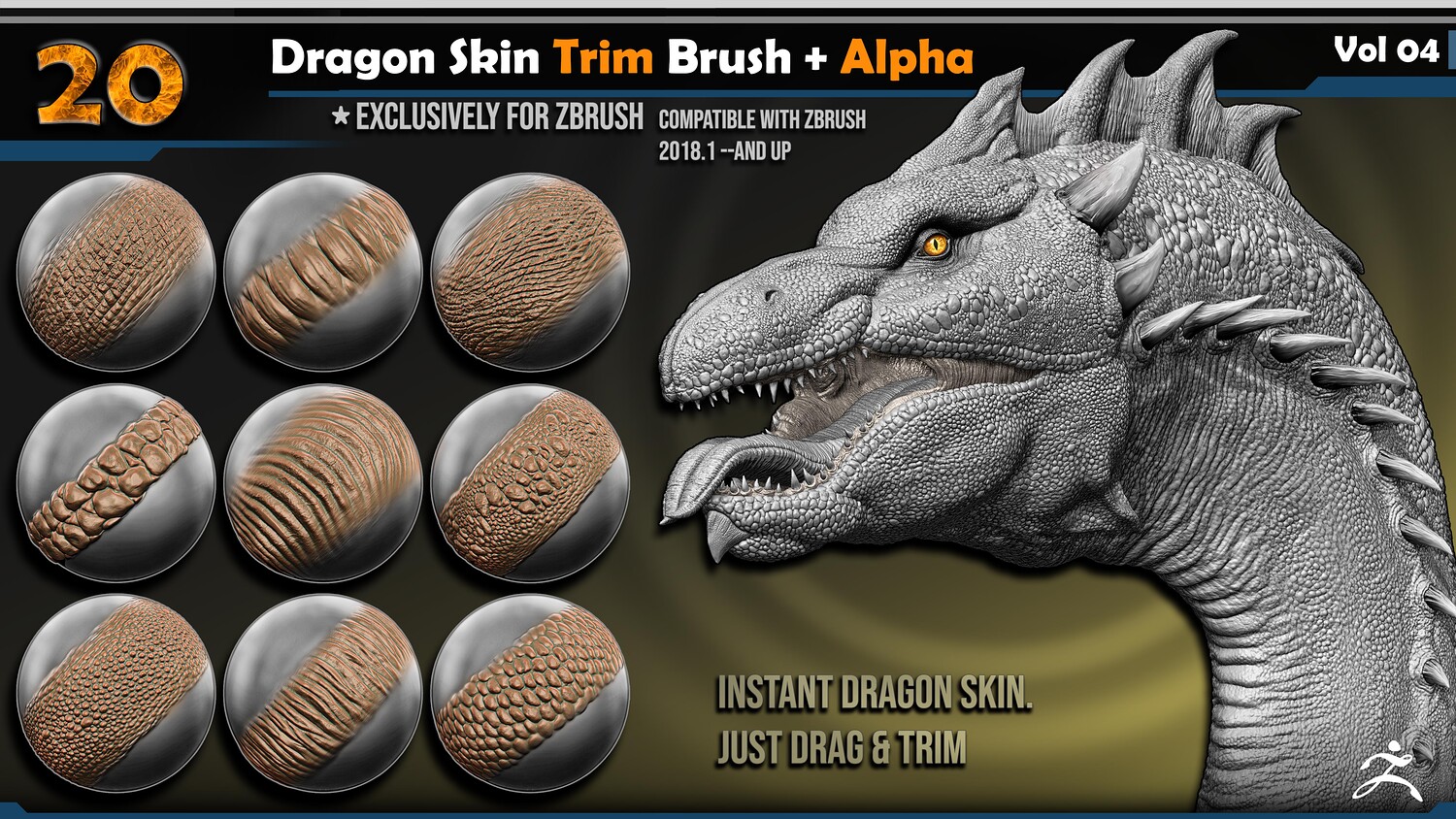 This Product include 20 Dragon Skin Trim Brush + Alpha | Vol.04 Have you spent hours crafting dragon scales and still felt unsatisfied?