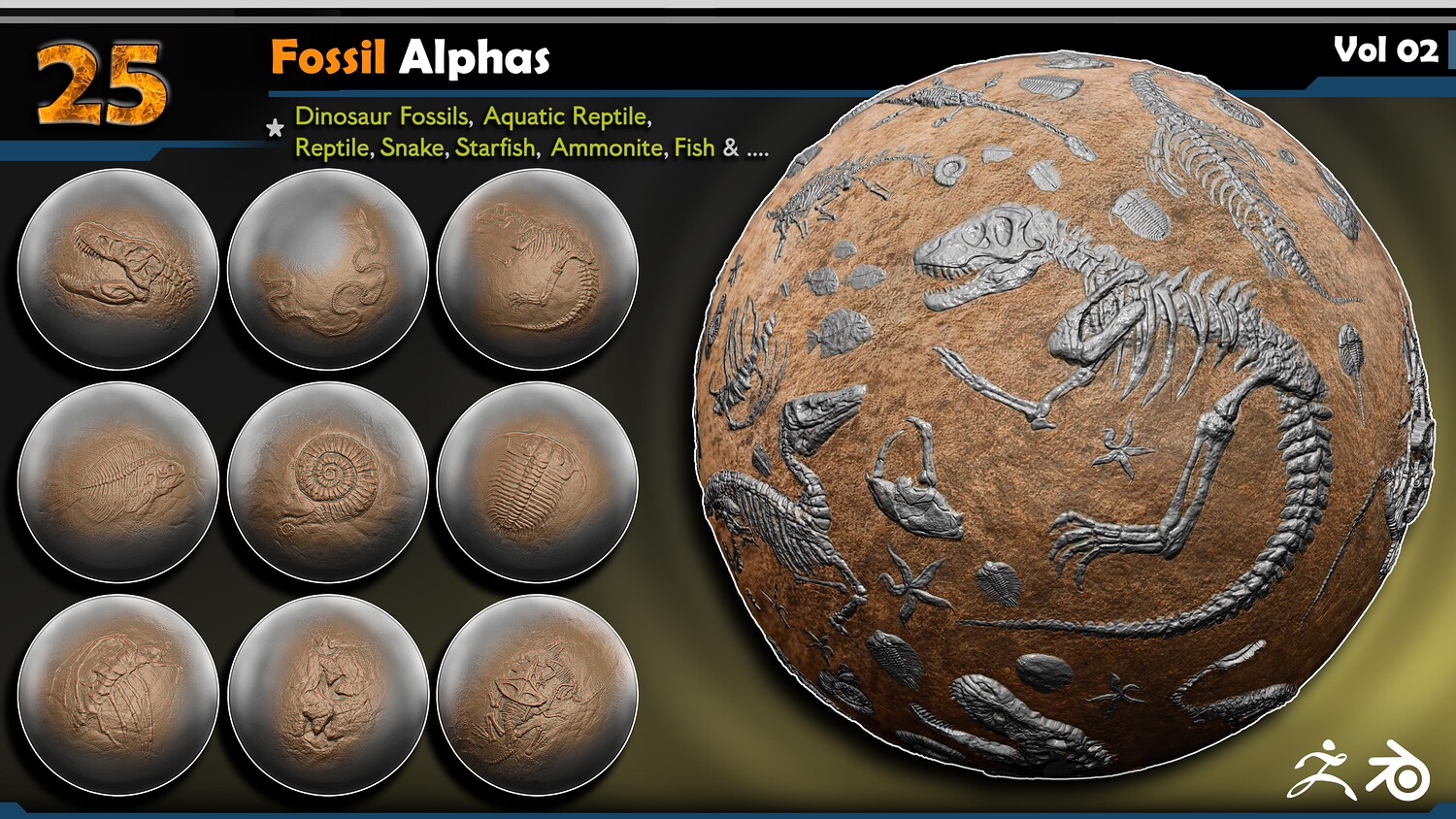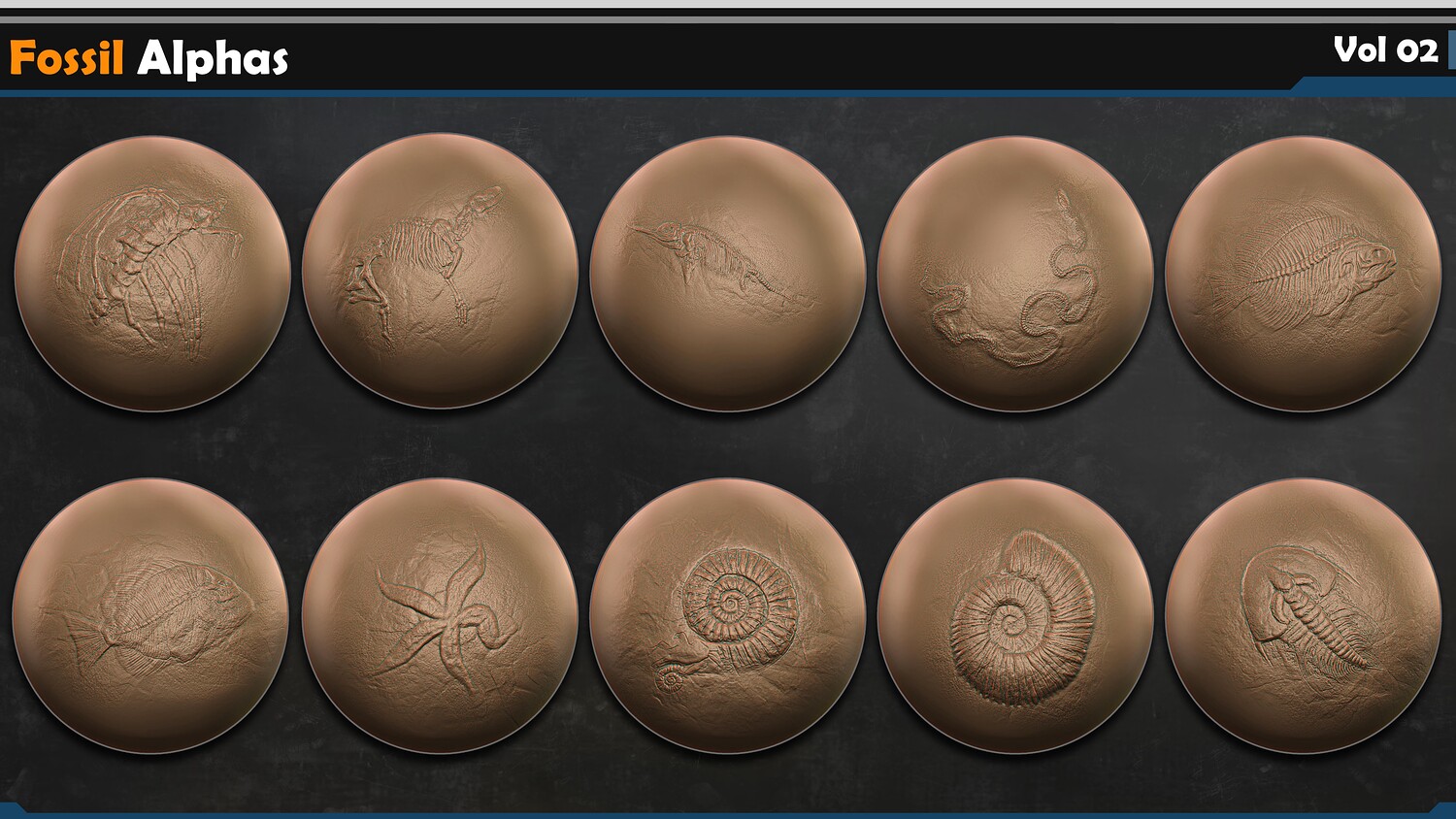 This Product include 25 Fossil Alphas| Vol.02 Add a touch of ancient life to your sculpts!