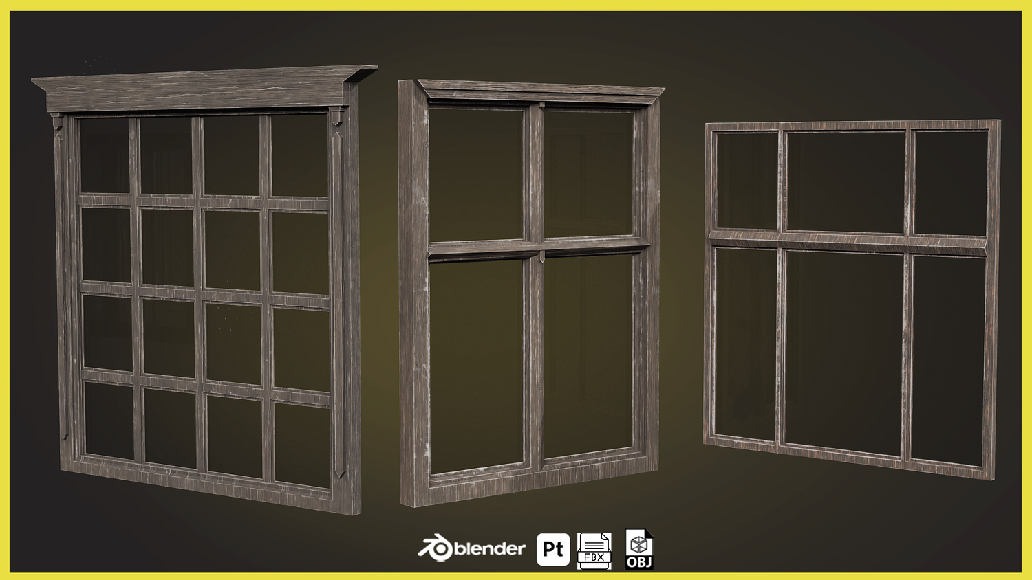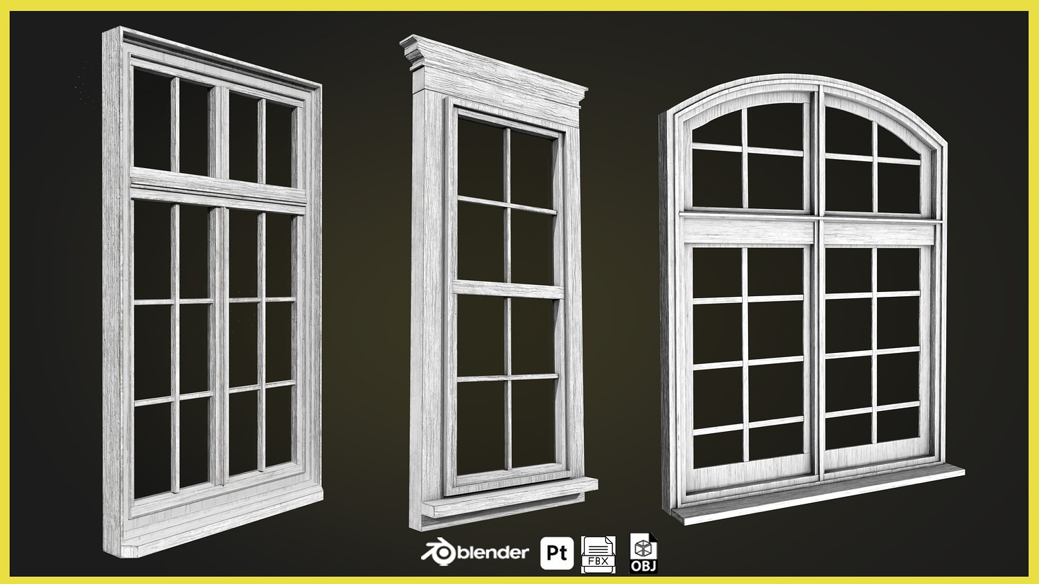 This pack includes 19 vintage-style wooden window models, carefully crafted to bring authenticity and charm to your 3D projects. Each window is designed with a classic, slightly aged look, making them perfect for historical, rustic, or traditional architectural scenes.