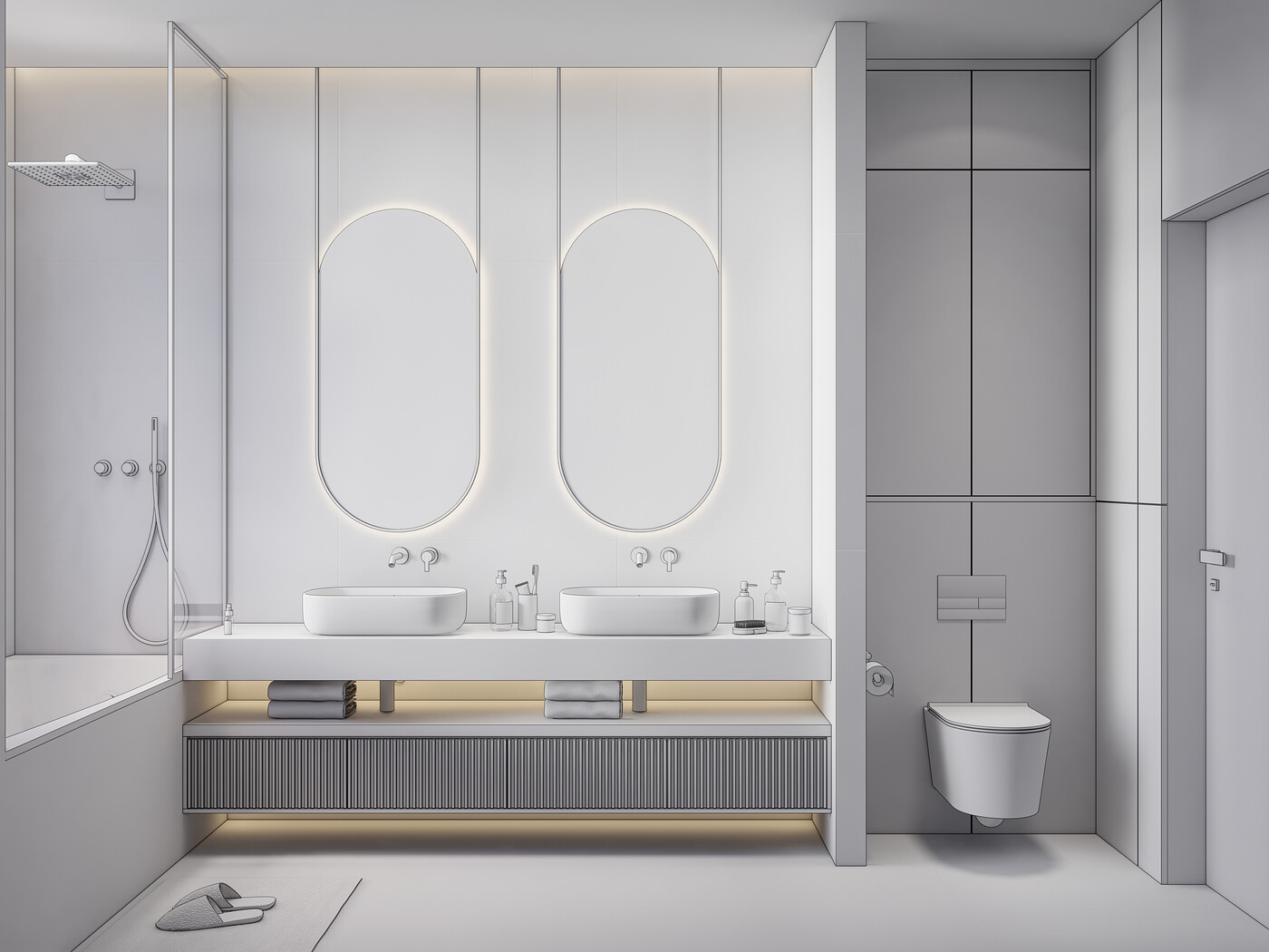 Elegant Modern Bathroom & Vanity 3D Model Scene - Perfect for Interior Design Projects!