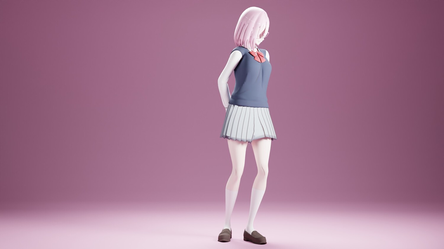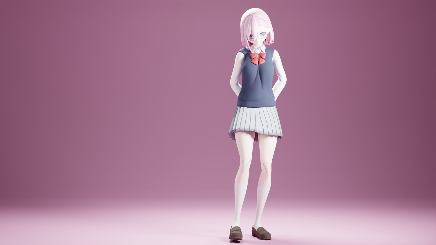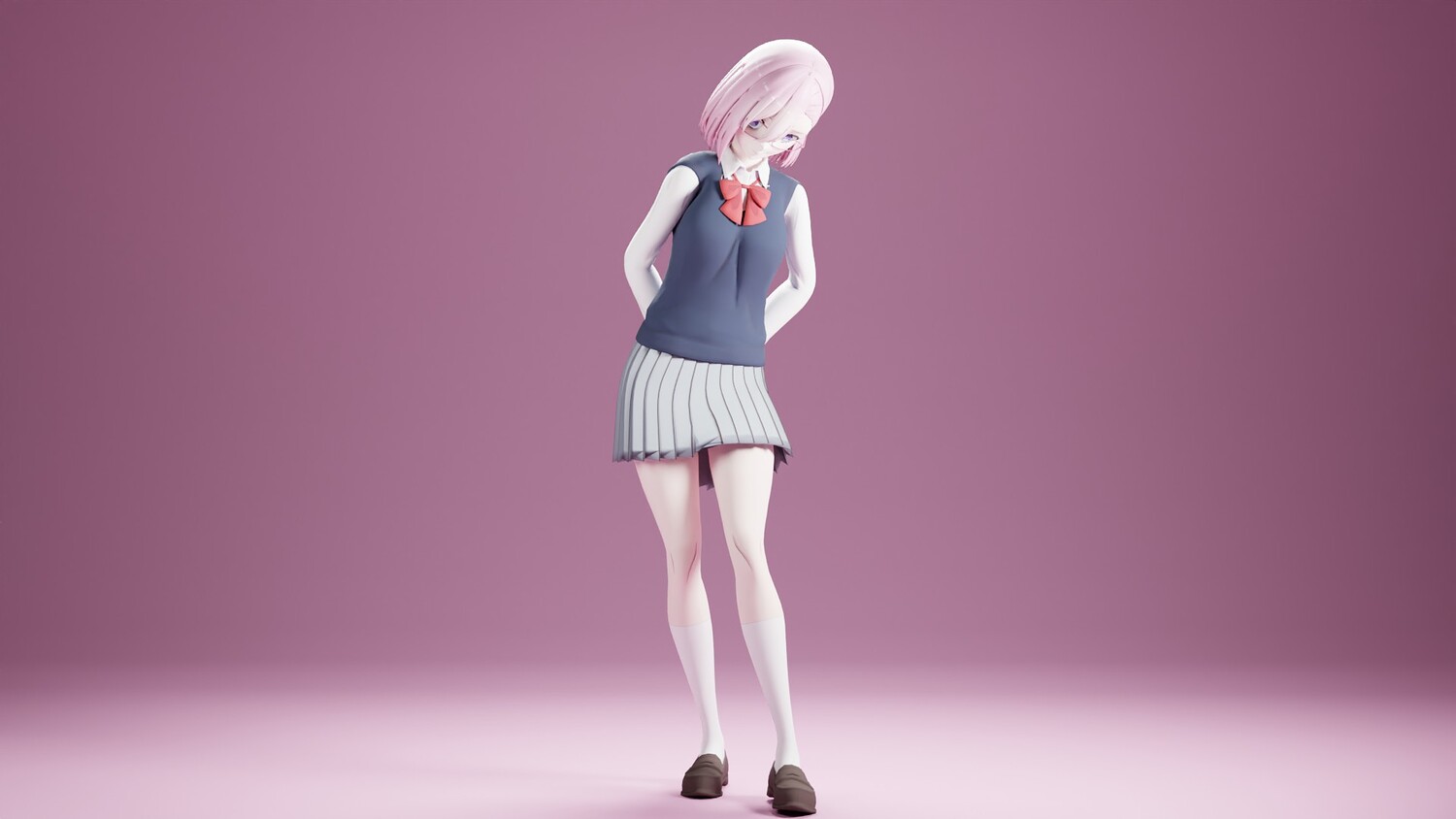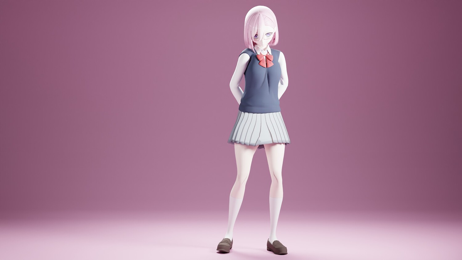 3D animation of the anime character ririsa amano from the anime 2.5-jigen no Ririsa, 3d model created using a blender, content includes: