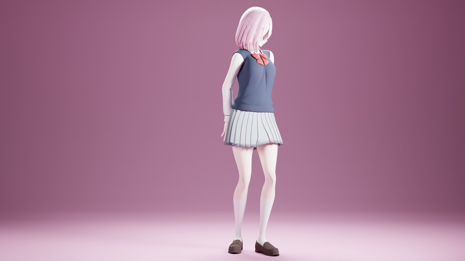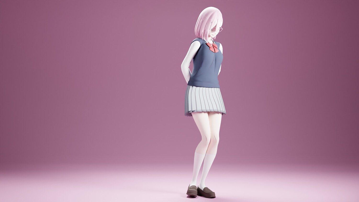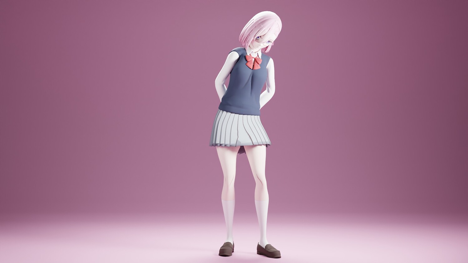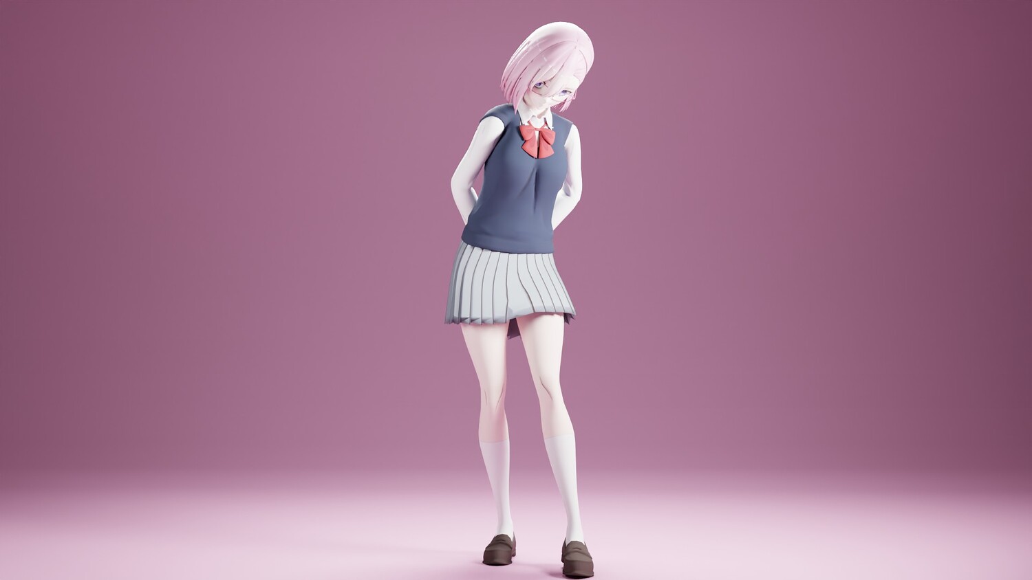 3D animation of the anime character ririsa amano from the anime 2.5-jigen no Ririsa, 3d model created using a blender, content includes: