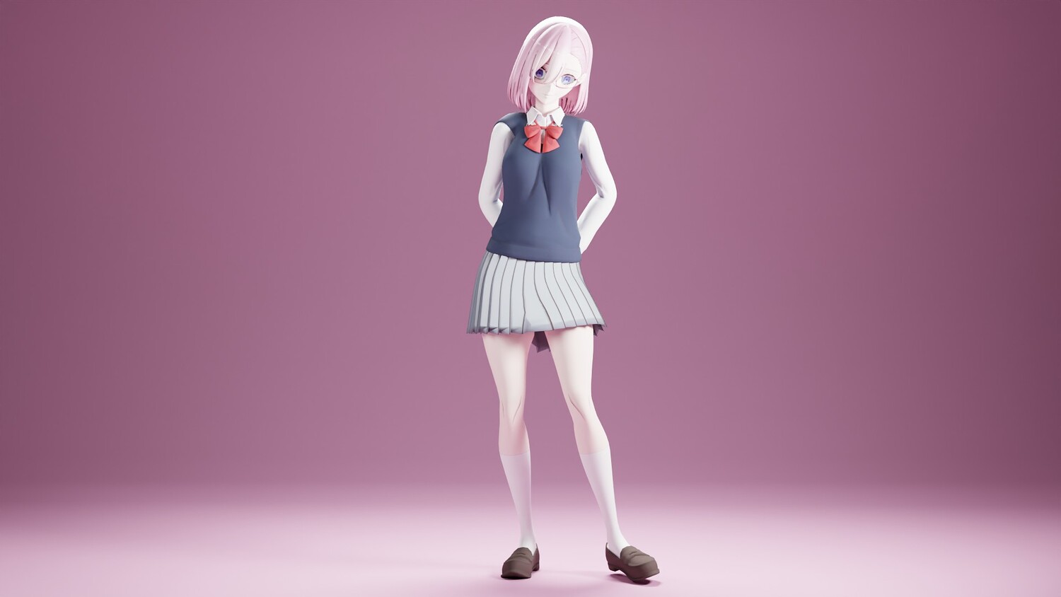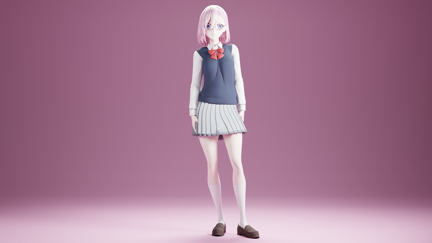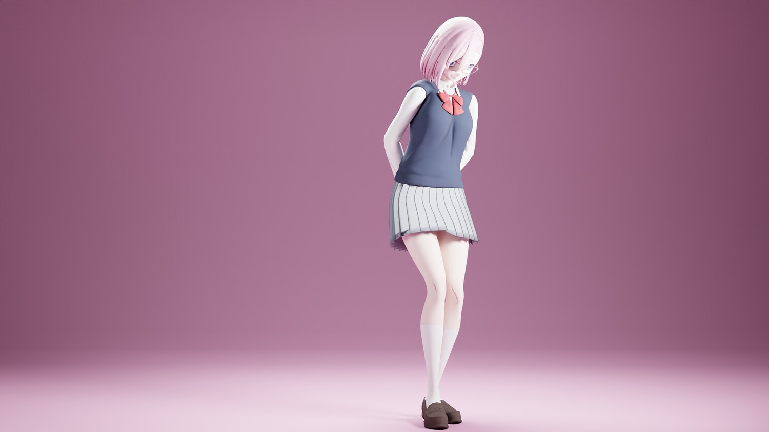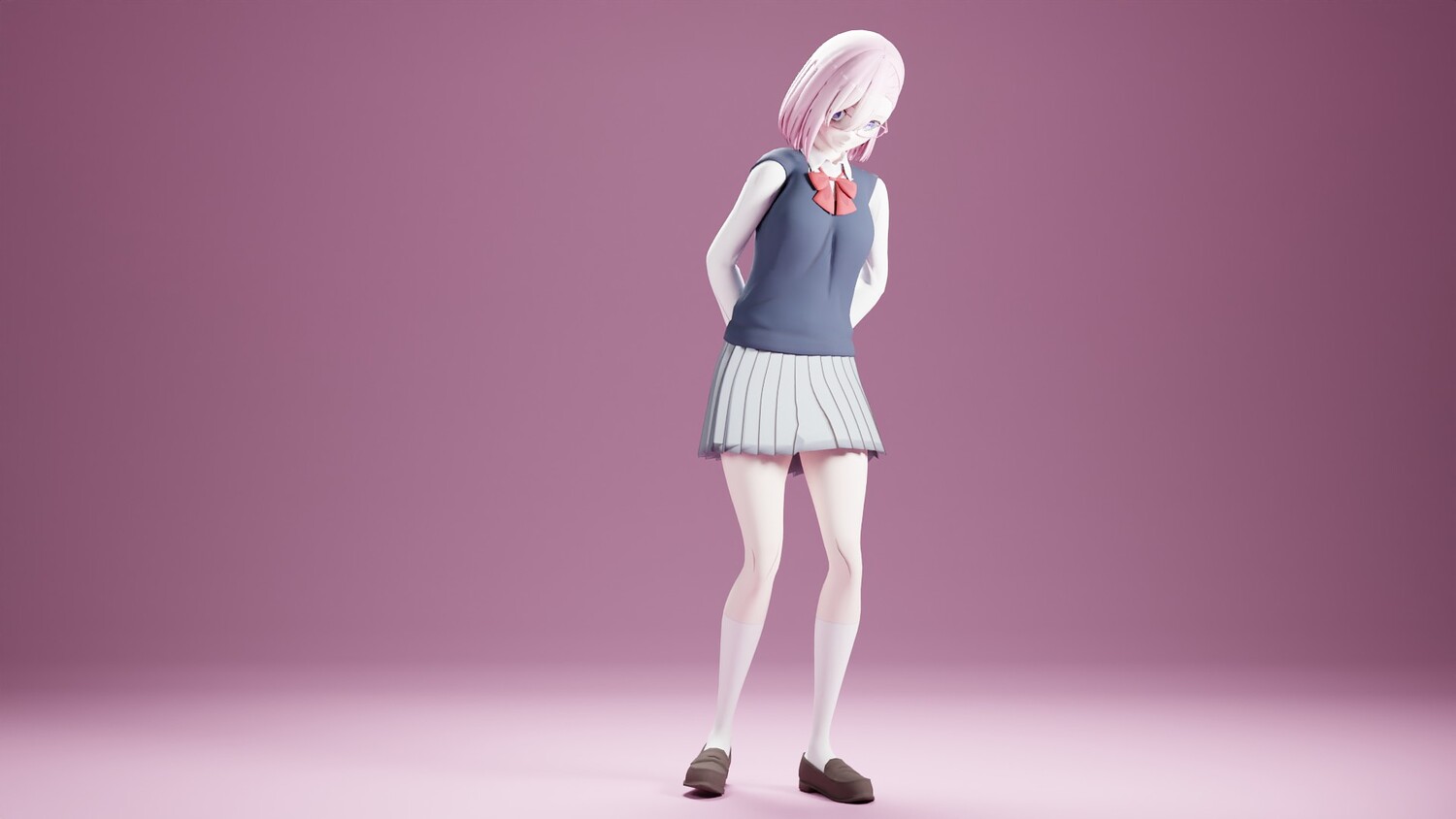 3D animation of the anime character ririsa amano from the anime 2.5-jigen no Ririsa, 3d model created using a blender, content includes: