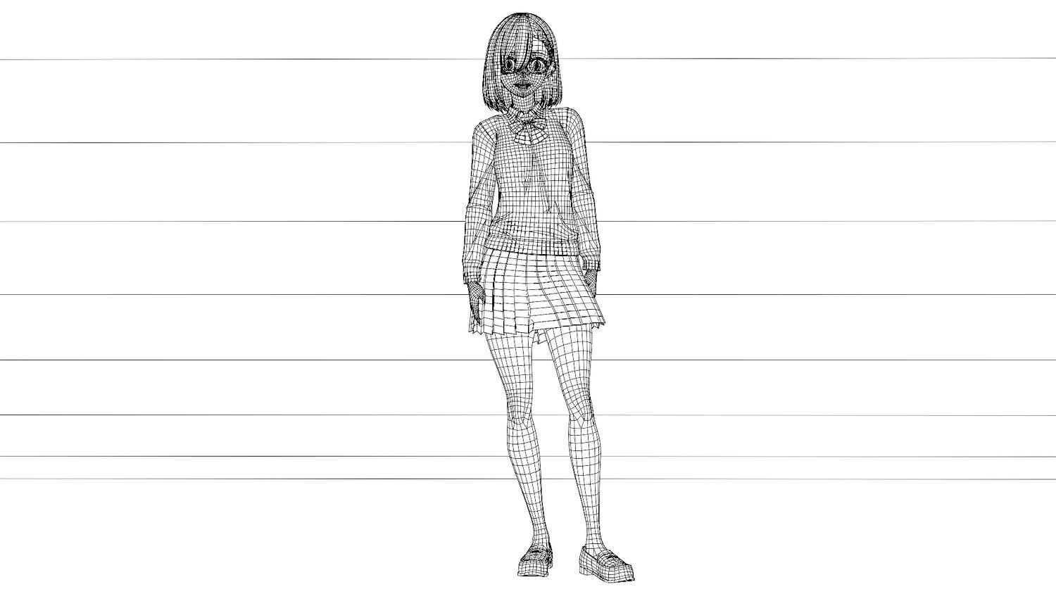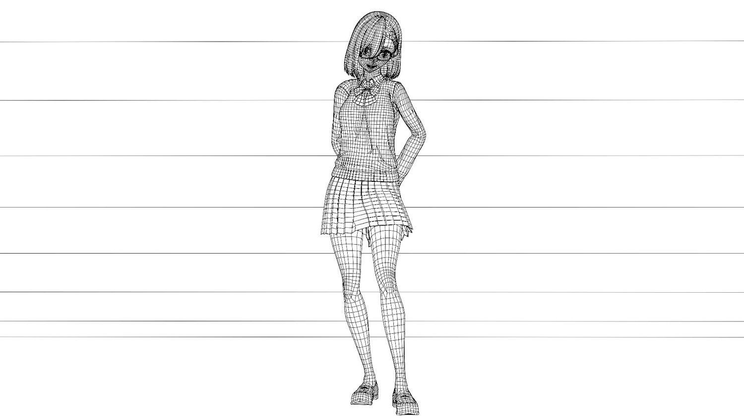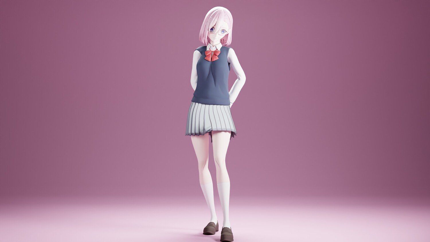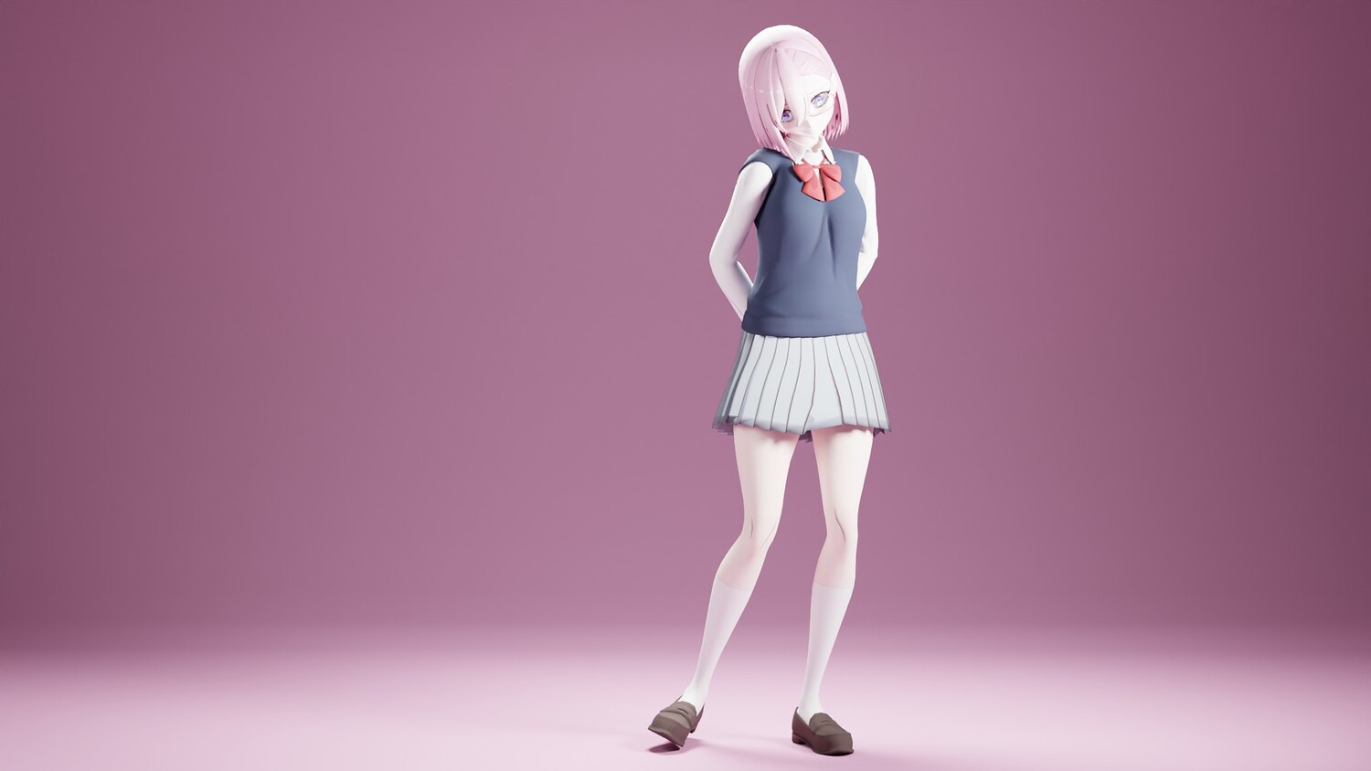 3D animation of the anime character ririsa amano from the anime 2.5-jigen no Ririsa, 3d model created using a blender, content includes: