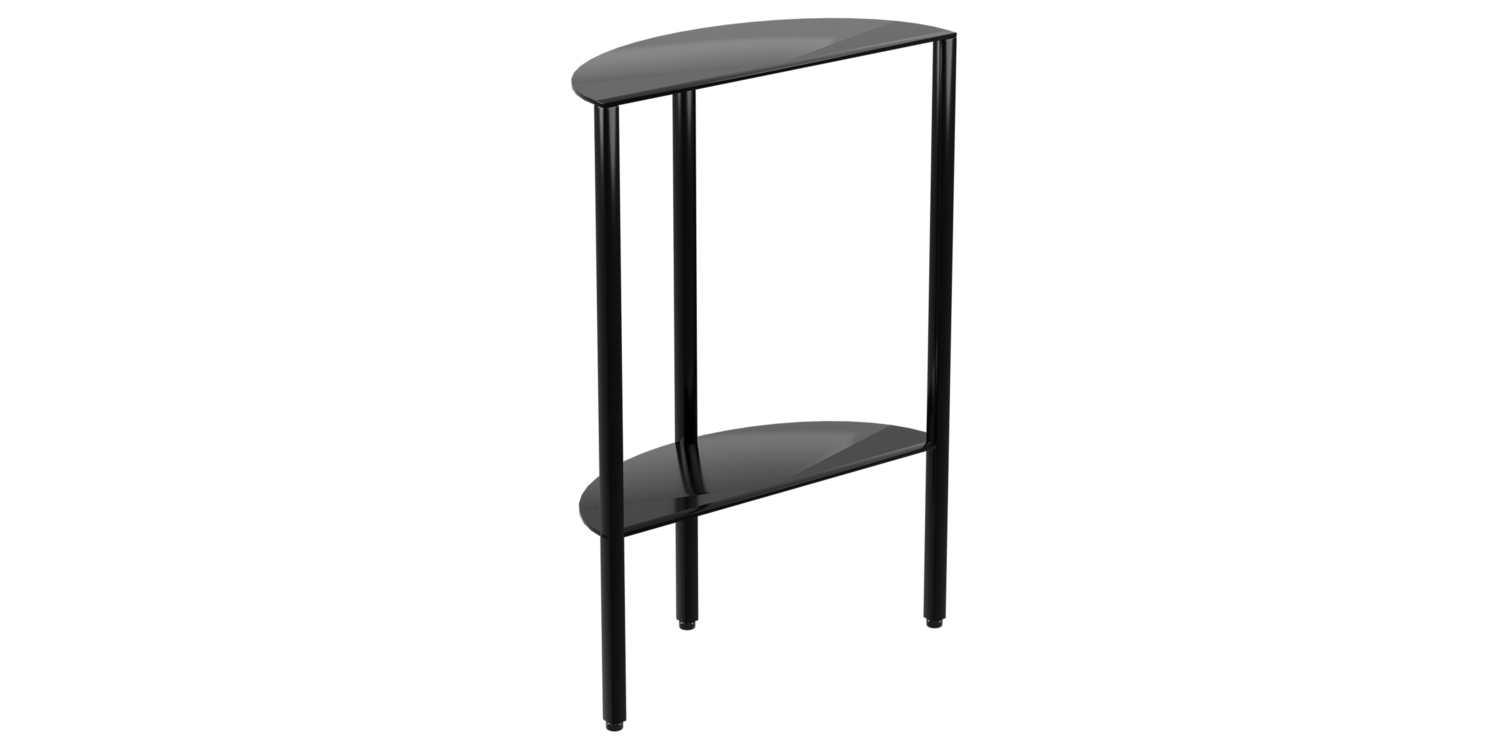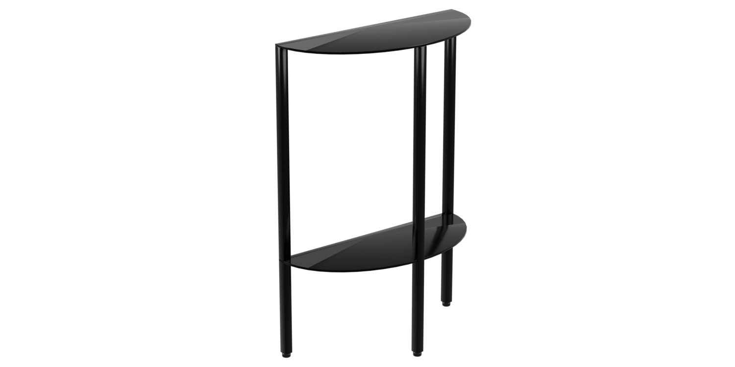 This modern console table, with its sleek design and bold black finish, is an ideal addition to any hallway or living space. Its contemporary appeal acts as a perfect backdrop for designer accessories.