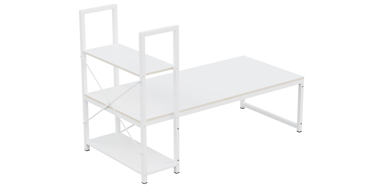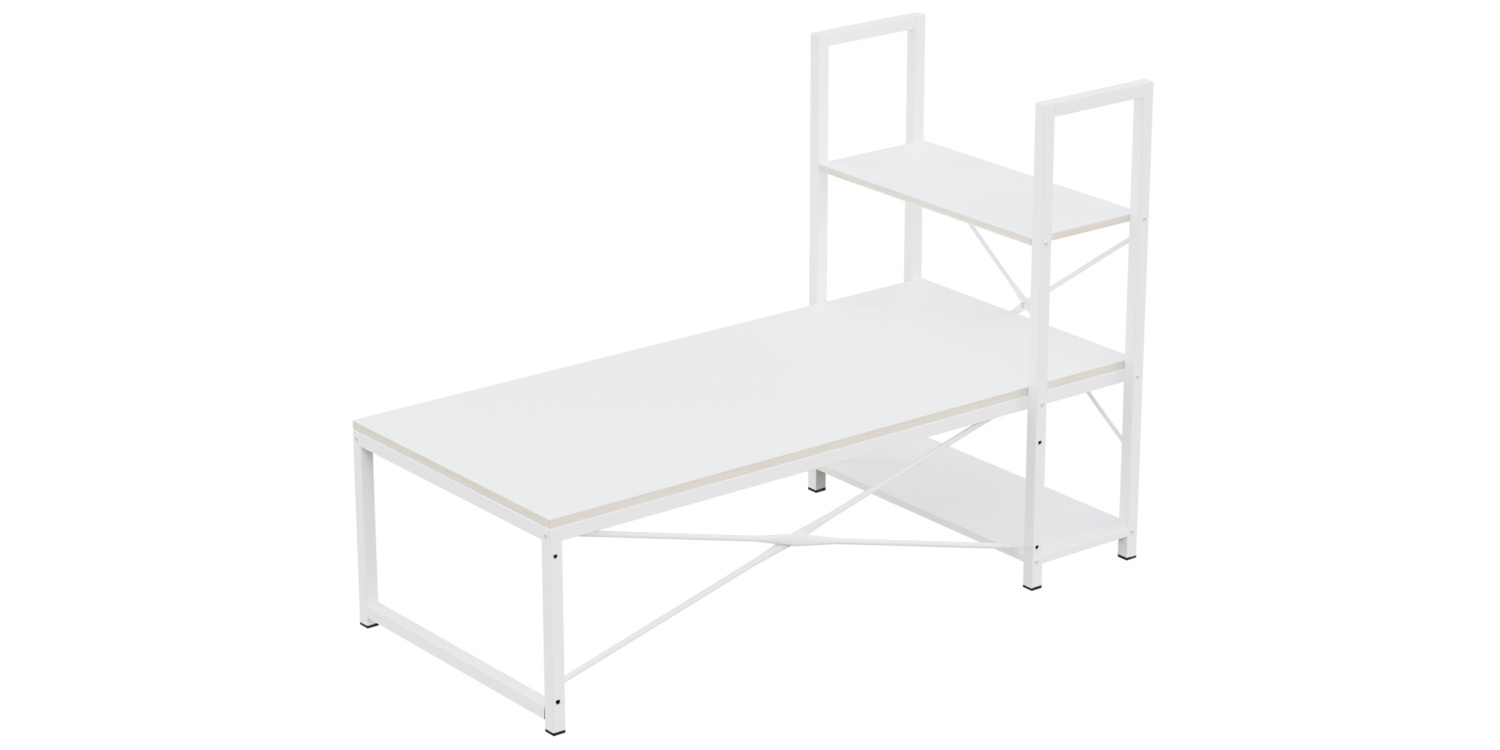 Transform your workspace with this contemporary white shelving desk. Its minimalist design coupled with practical shelving offers a stylish and efficient storage solution for any home office.