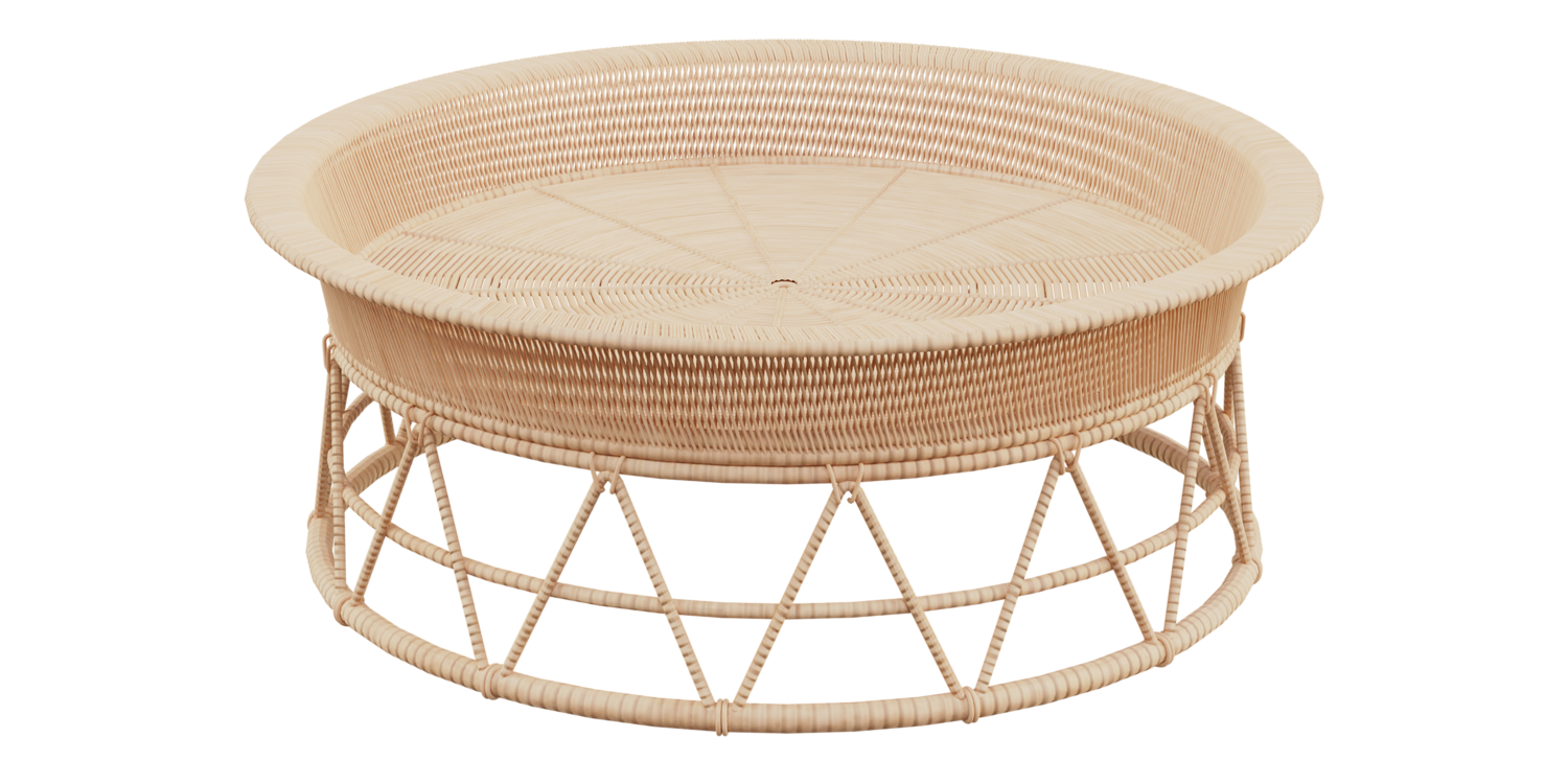 Handcrafted bohemian rattan coffee table, eco-friendly choice for cozy interiors.