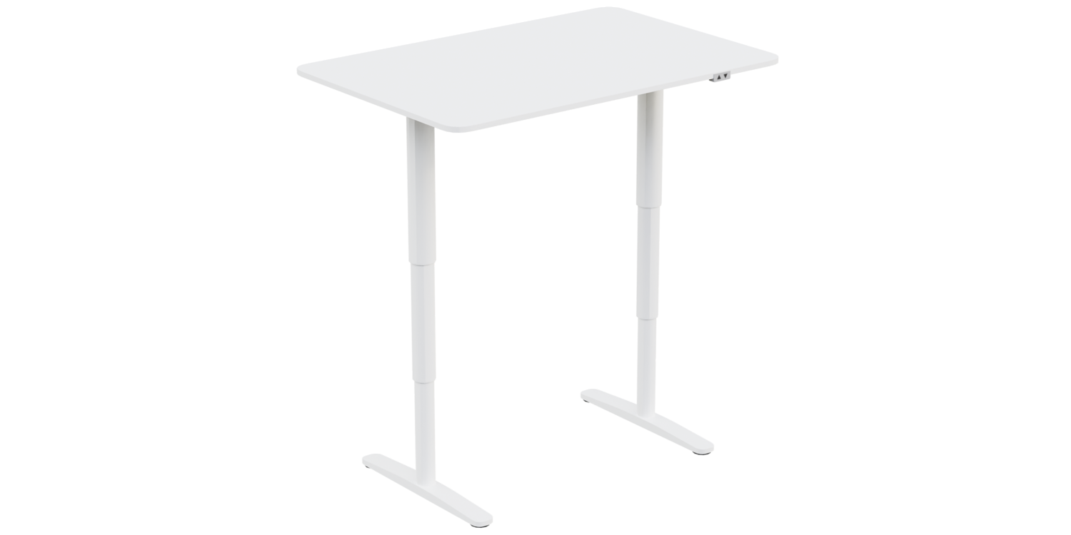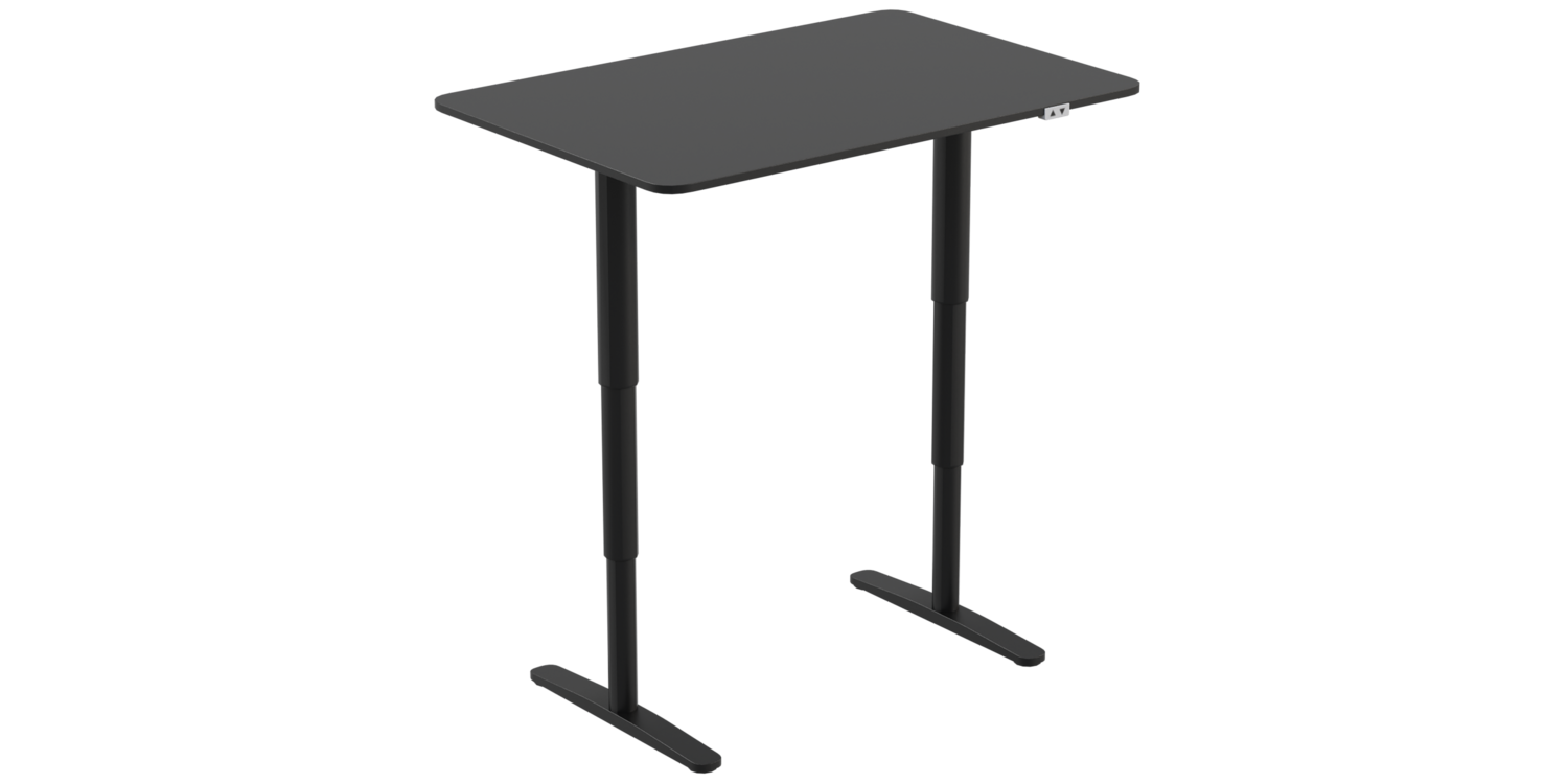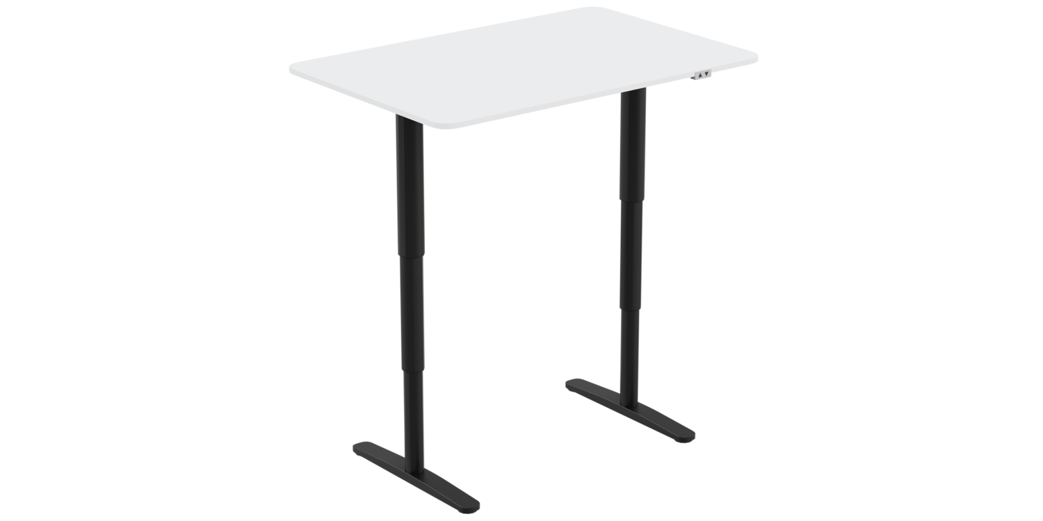Modern adjustable height workstation, ergonomic design for comfortable office use.