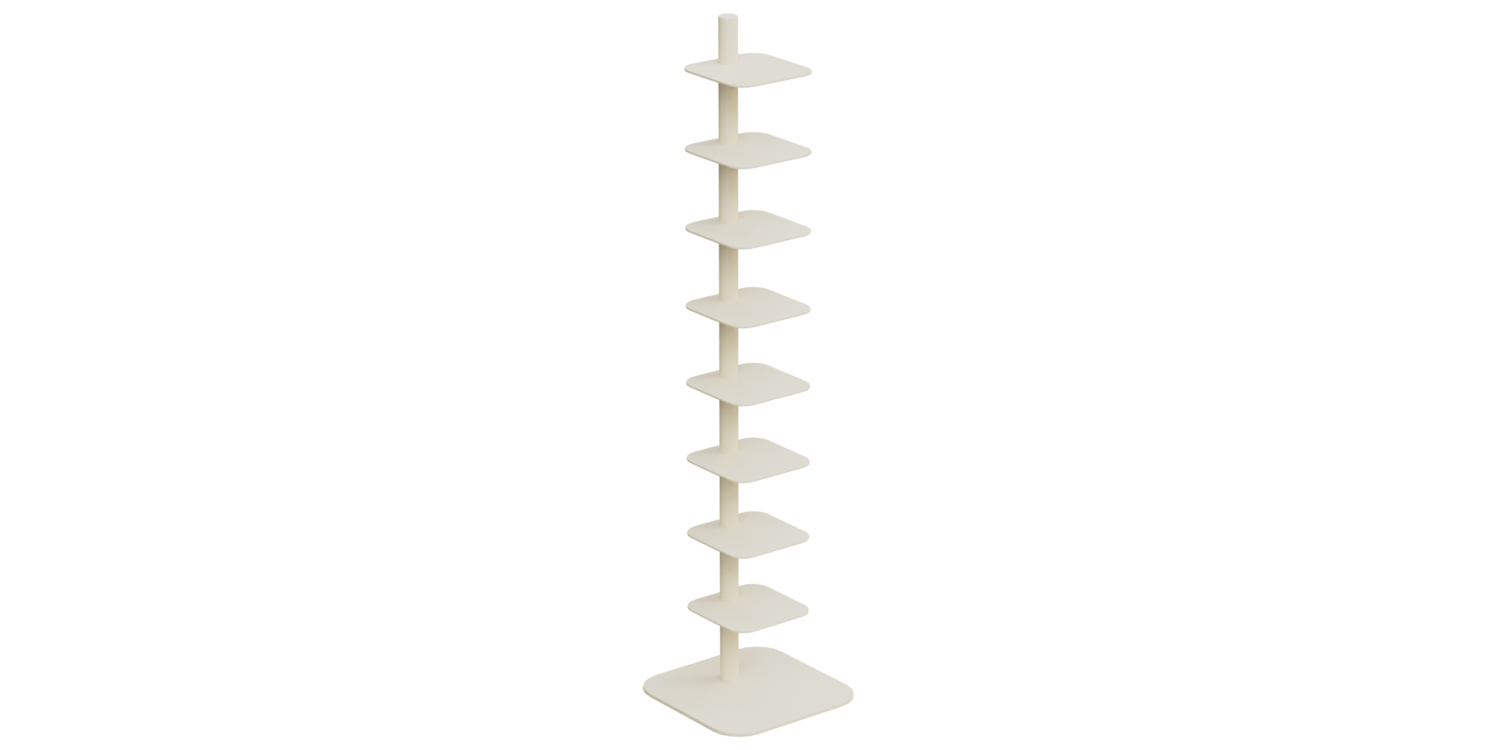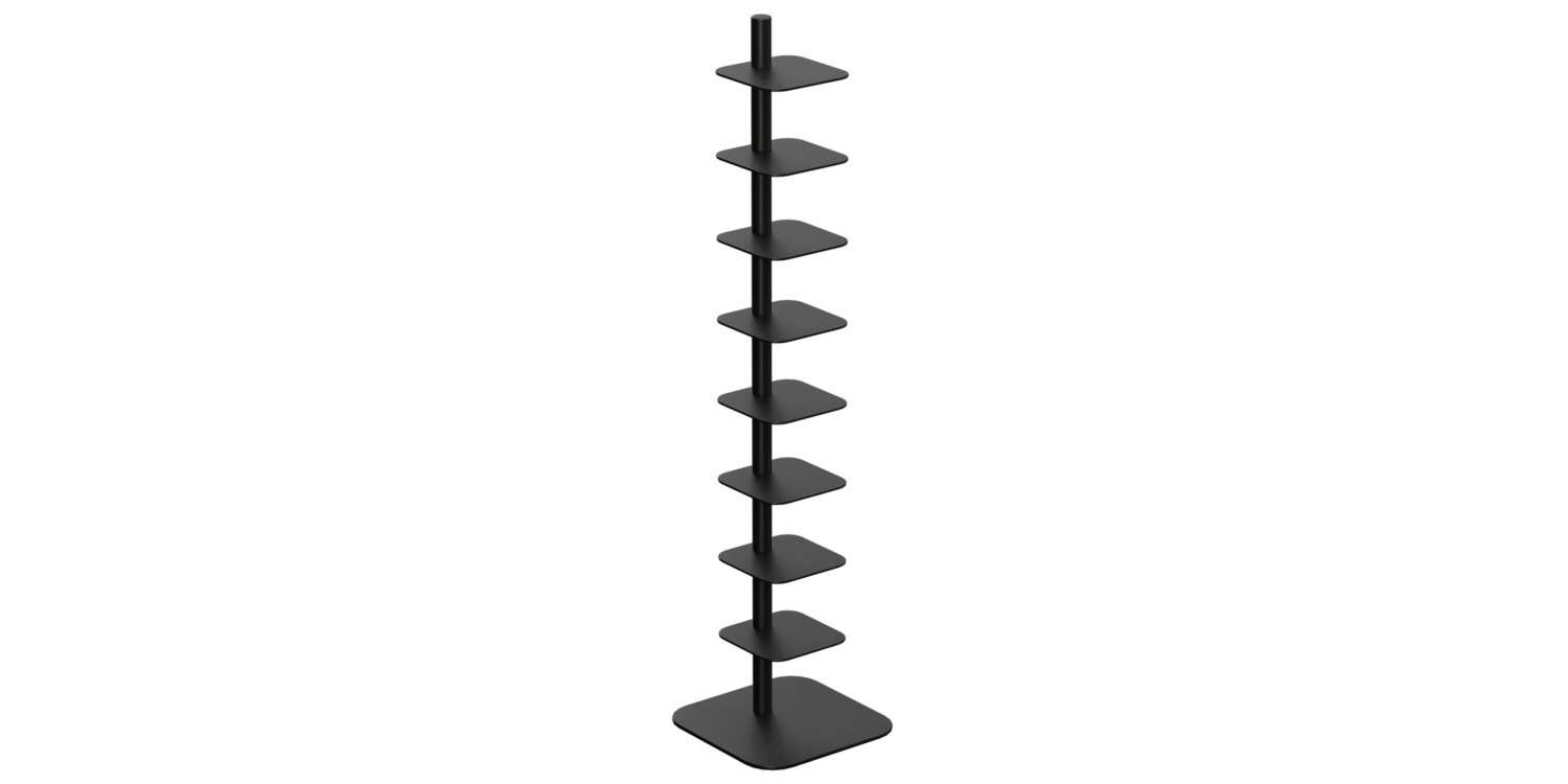 A spiral display shelf that provides an artful twist to storage and display needs.