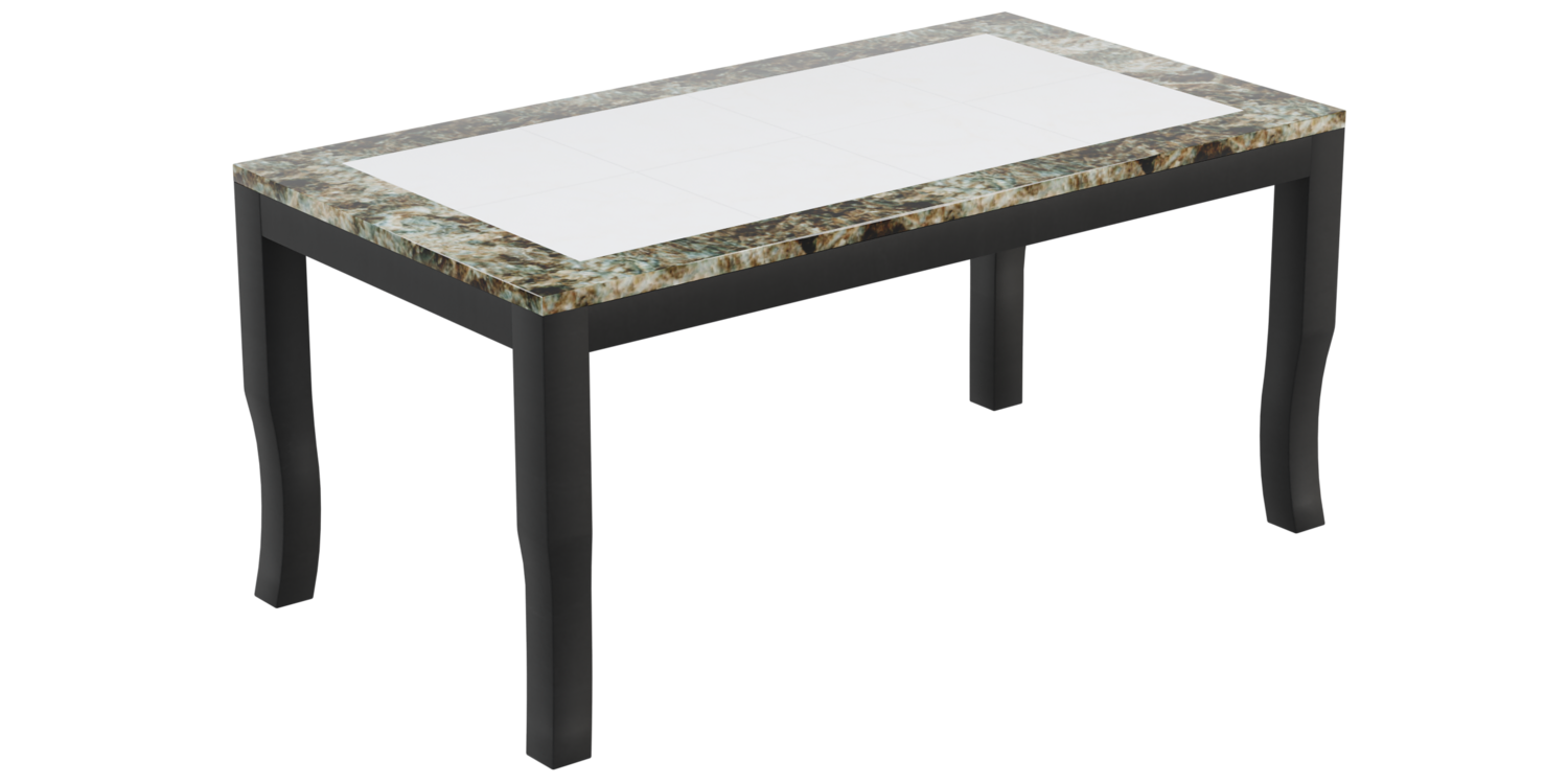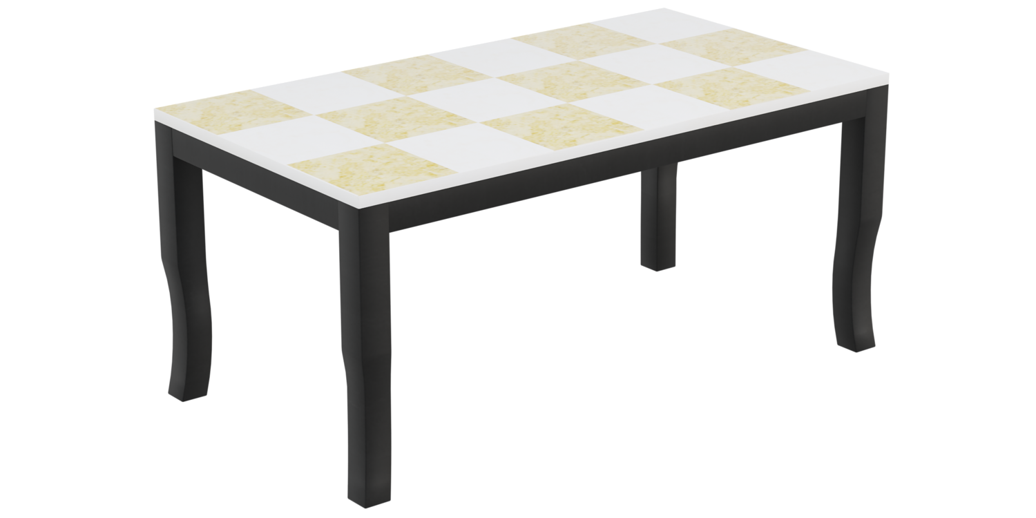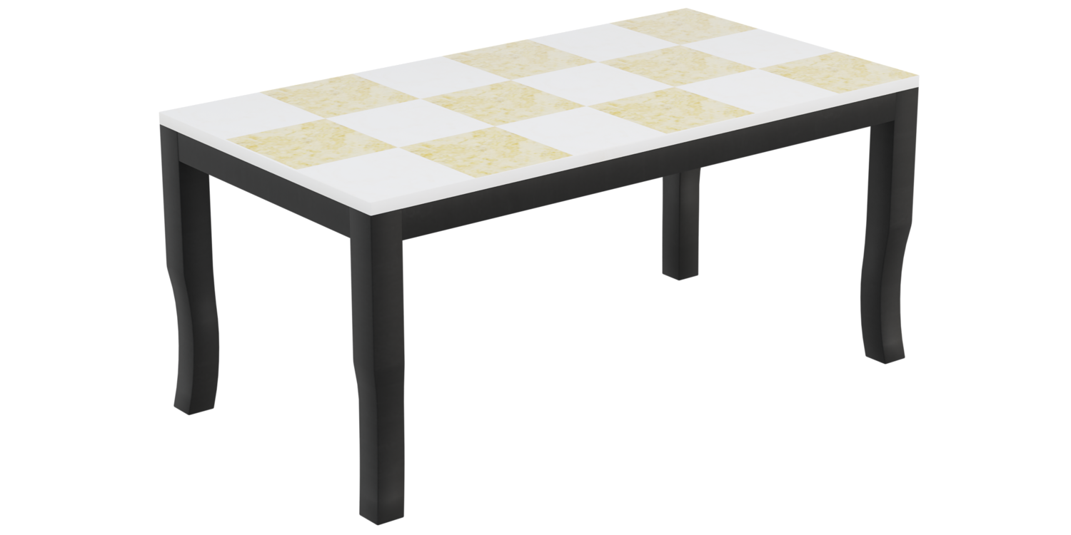 Sturdy kitchen table with a checkered tile top, great for dining and prep work.