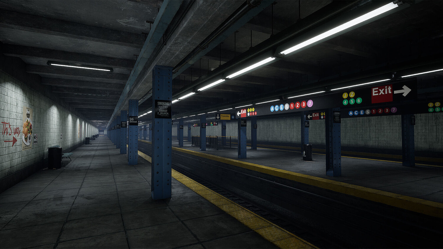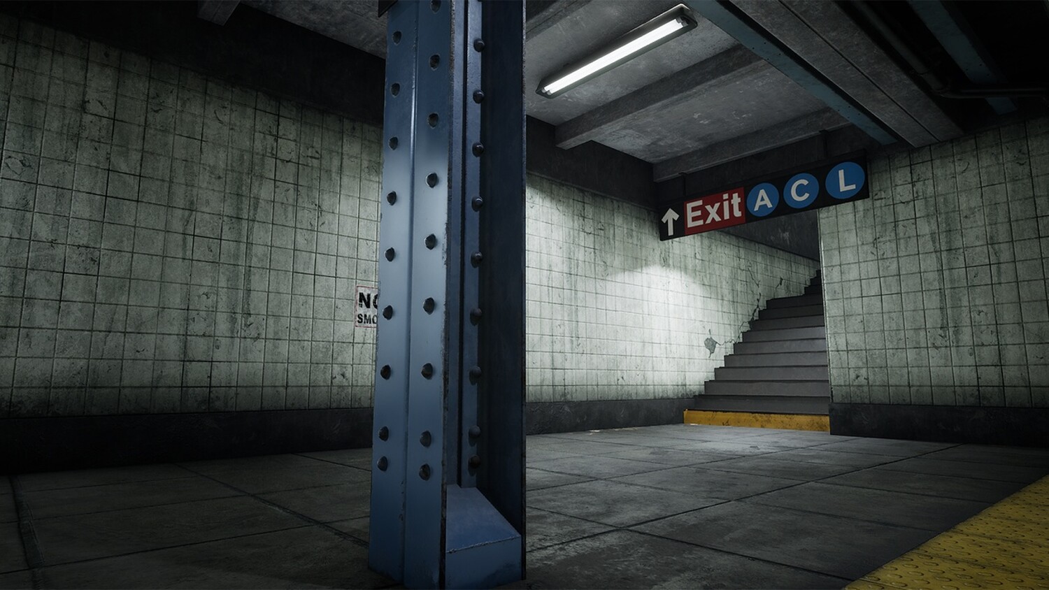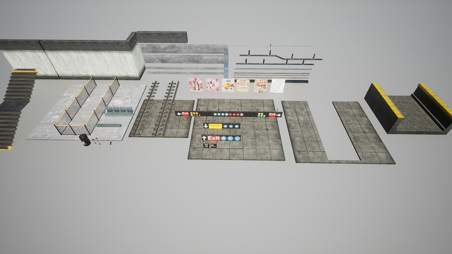 Modular Subway Station Pbr Models. Texel density: 512 Pixels / m. No train model included. I used AI tool to create some posters specifically to circumvent any potential copyright issues. You can see this short film I created using this asset: https://www.youtube.com/shorts/T9dZ_5JOqV4