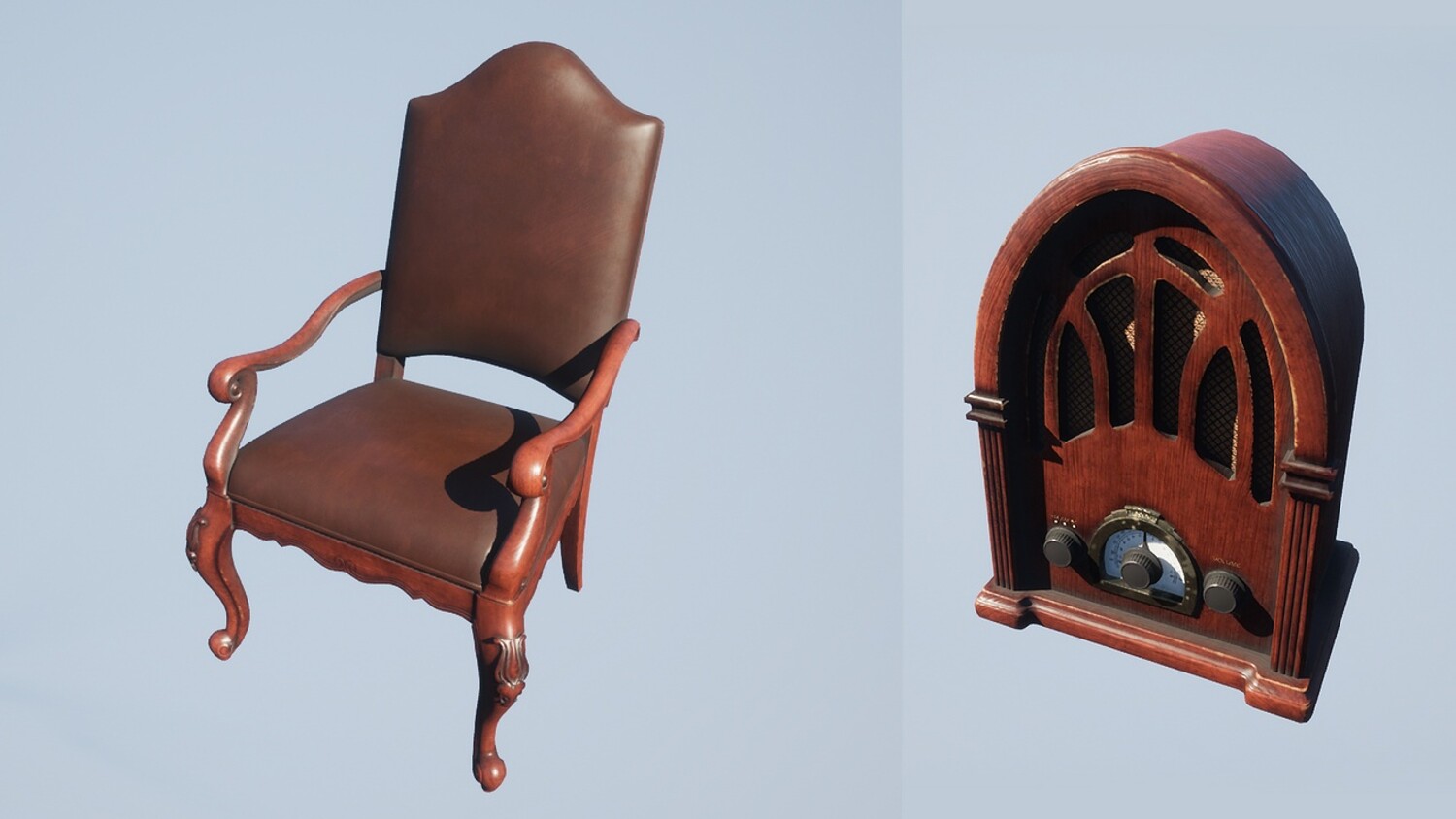 Standard shader for most of props. Subsurface shader for Lampshade and curtain.