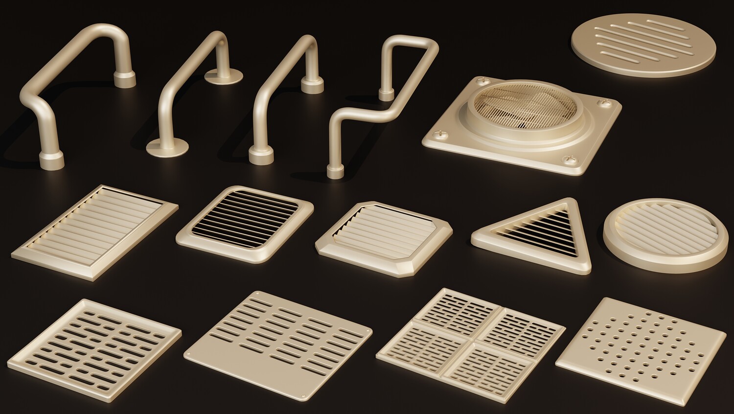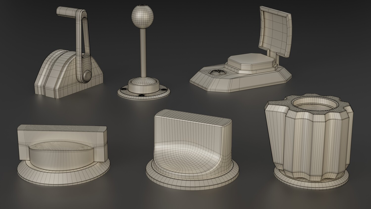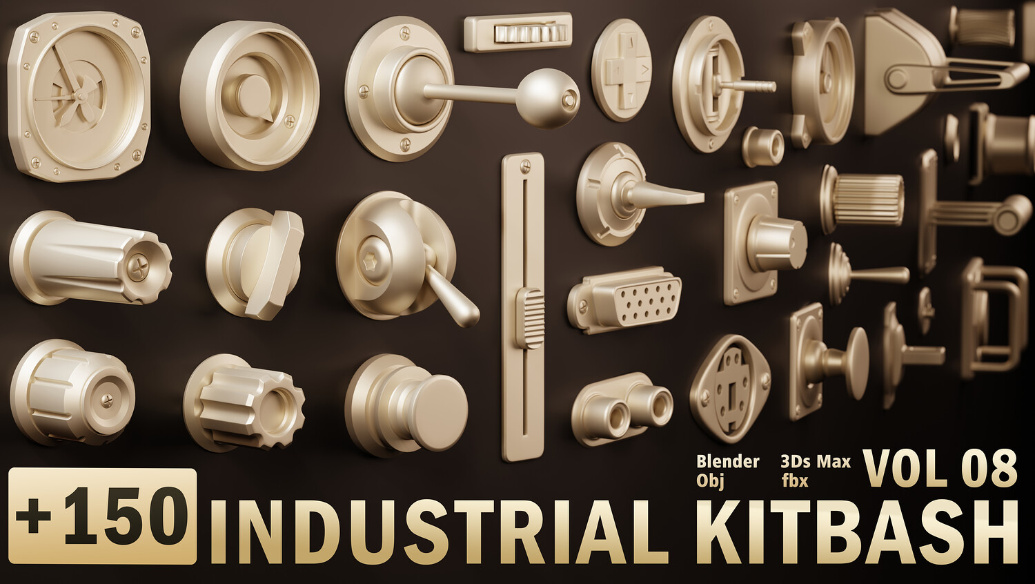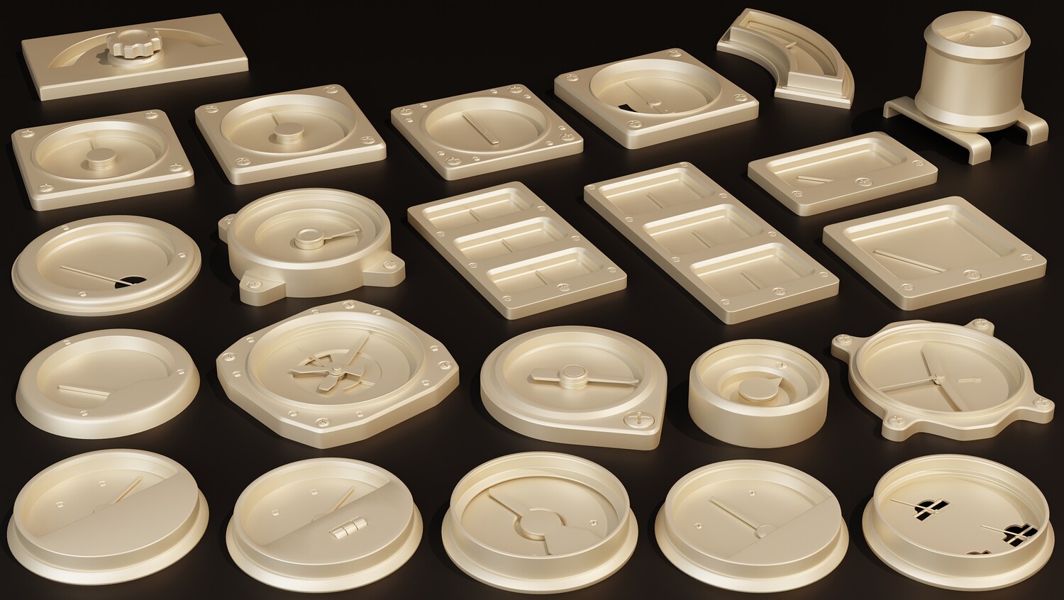 The Kitbash includes 150+ control panel elements. This set will help you save time with modelling electric control panels and high-poly props.