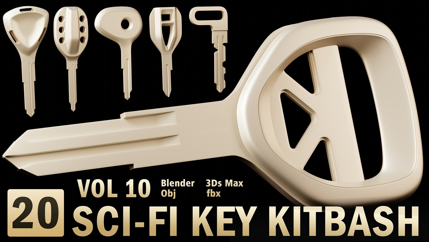 Sci-Fi Key Kitbash" is a collection of 3D keys designed with a futuristic, sci-fi aesthetic, perfect for creative and artistic projects. This set includes keys with unique shapes and structures, each evoking a distinct vibe of advanced technology and imaginative worlds. The meshes are clean and optimized for 3D workflows, provided without unwrap or materials, allowing you full freedom to customize them according to your project’s needs. Available formats include Blender, FBX, and OBJ, ensuring compatibility with most 3D software.