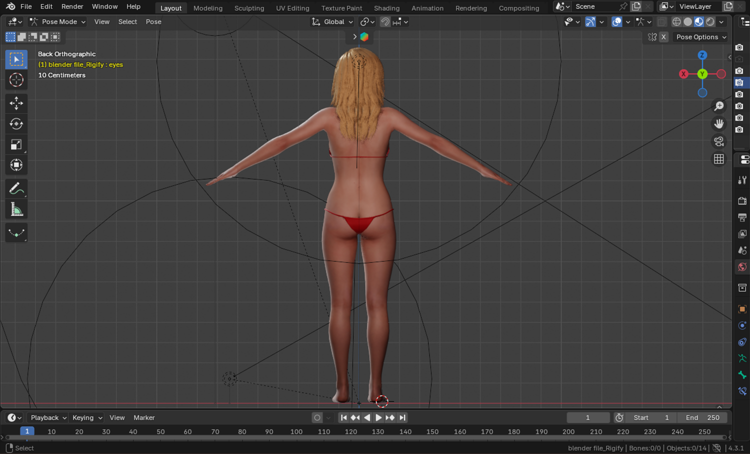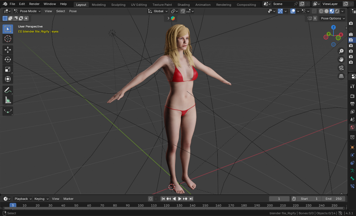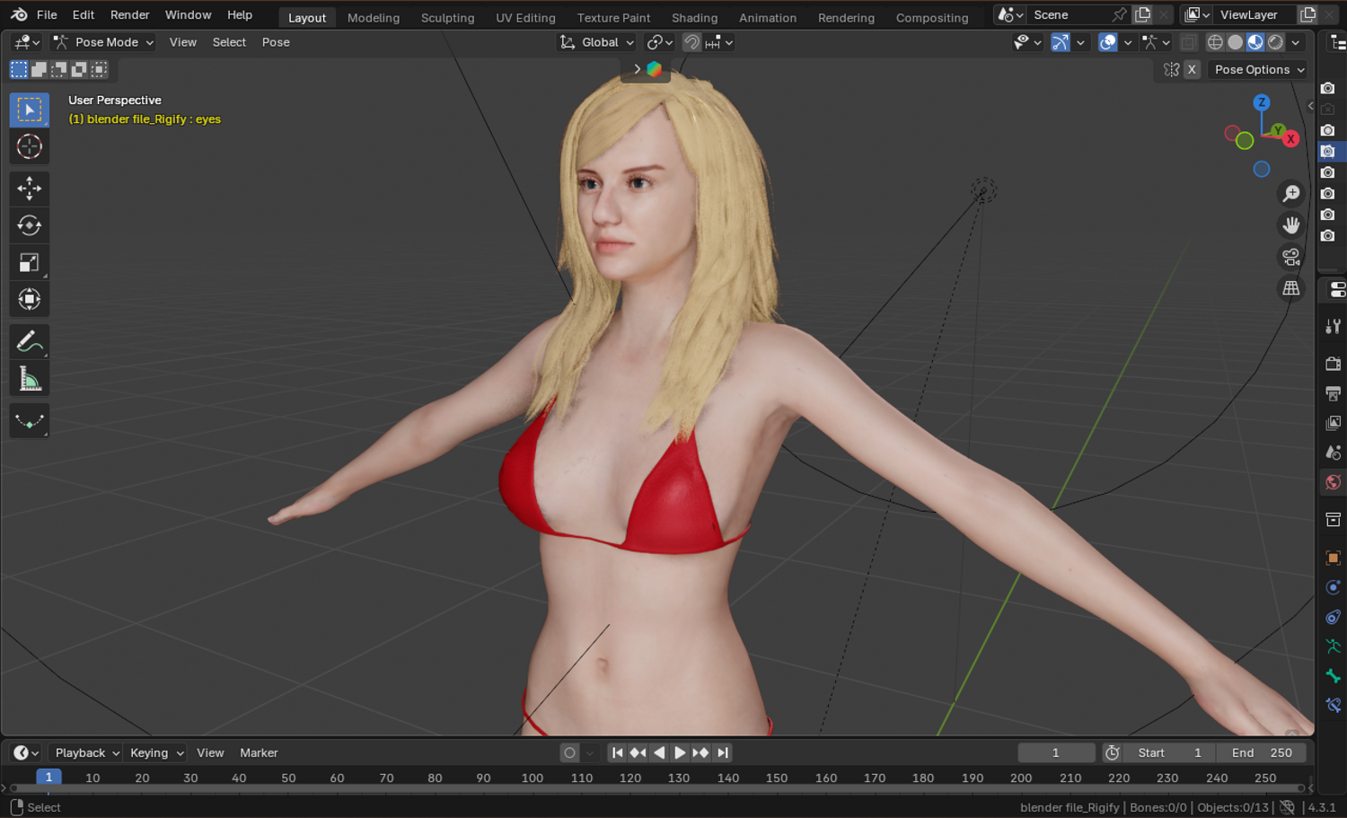 Realistic Female 3D Character with Rig – Blonde Hair, Red Bikini (.blend format)