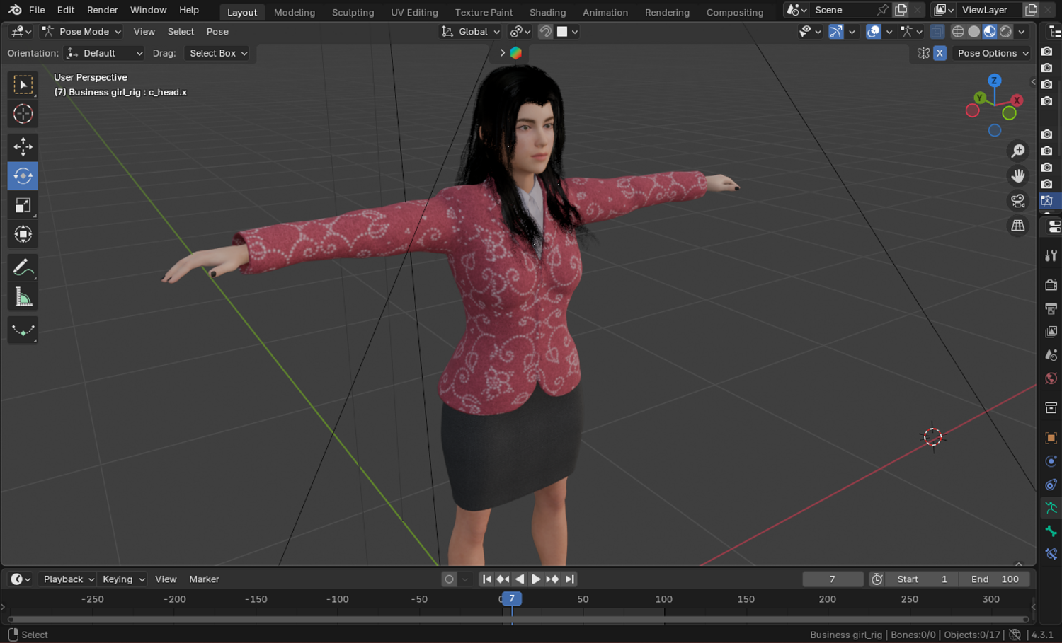Product Title: Pink Blazer Female – Fully Rigged 3D Character (.blend Format)