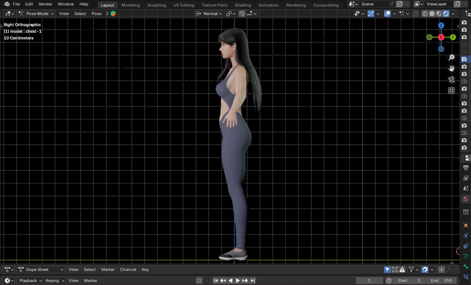 Title: Realistic Gray Bodysuit Female – Fully Rigged 3D Character (.blend)
