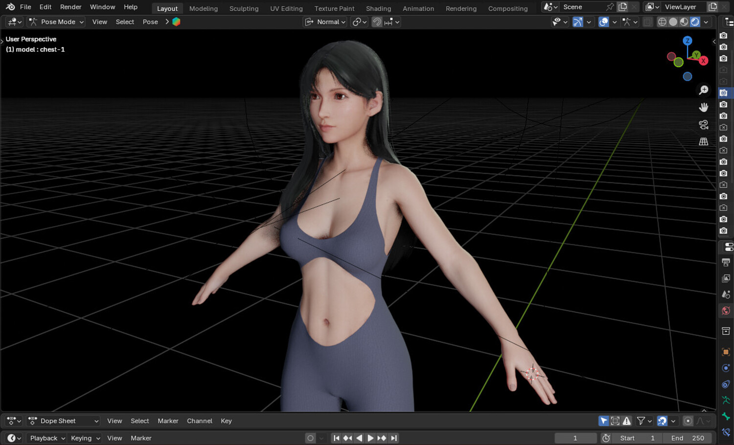 Description: The Realistic Gray Bodysuit Female is a high-quality, fully rigged 3D character model designed for professional use in animation, game development, and digital art. Created in Blender (.blend format), this model features a realistic female anatomy and a sleek gray bodysuit with detailed fabric texture and natural surface shading.