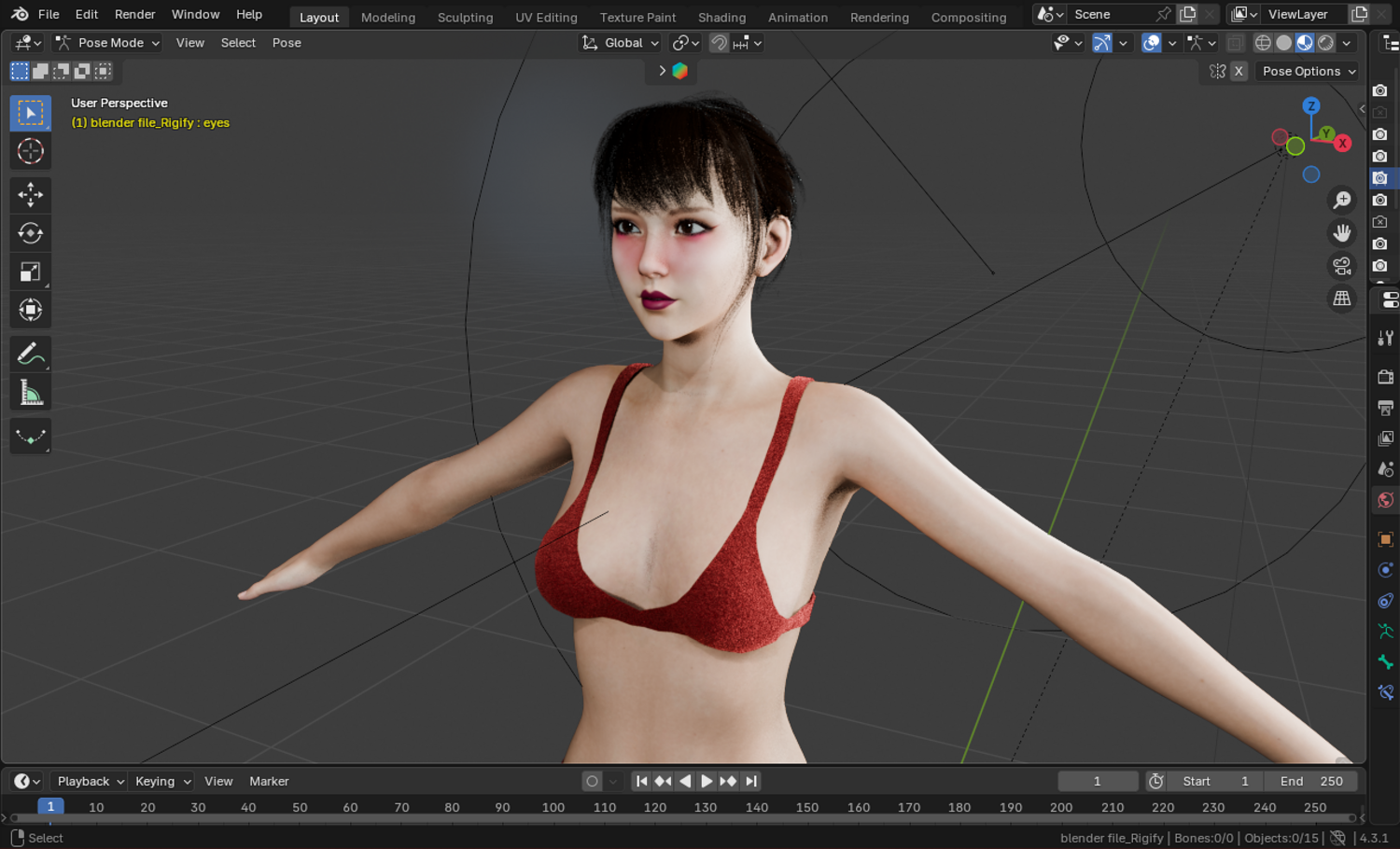 Product Title: Realistic Red Bikini Female – Fully Rigged 3D Character (.blend)