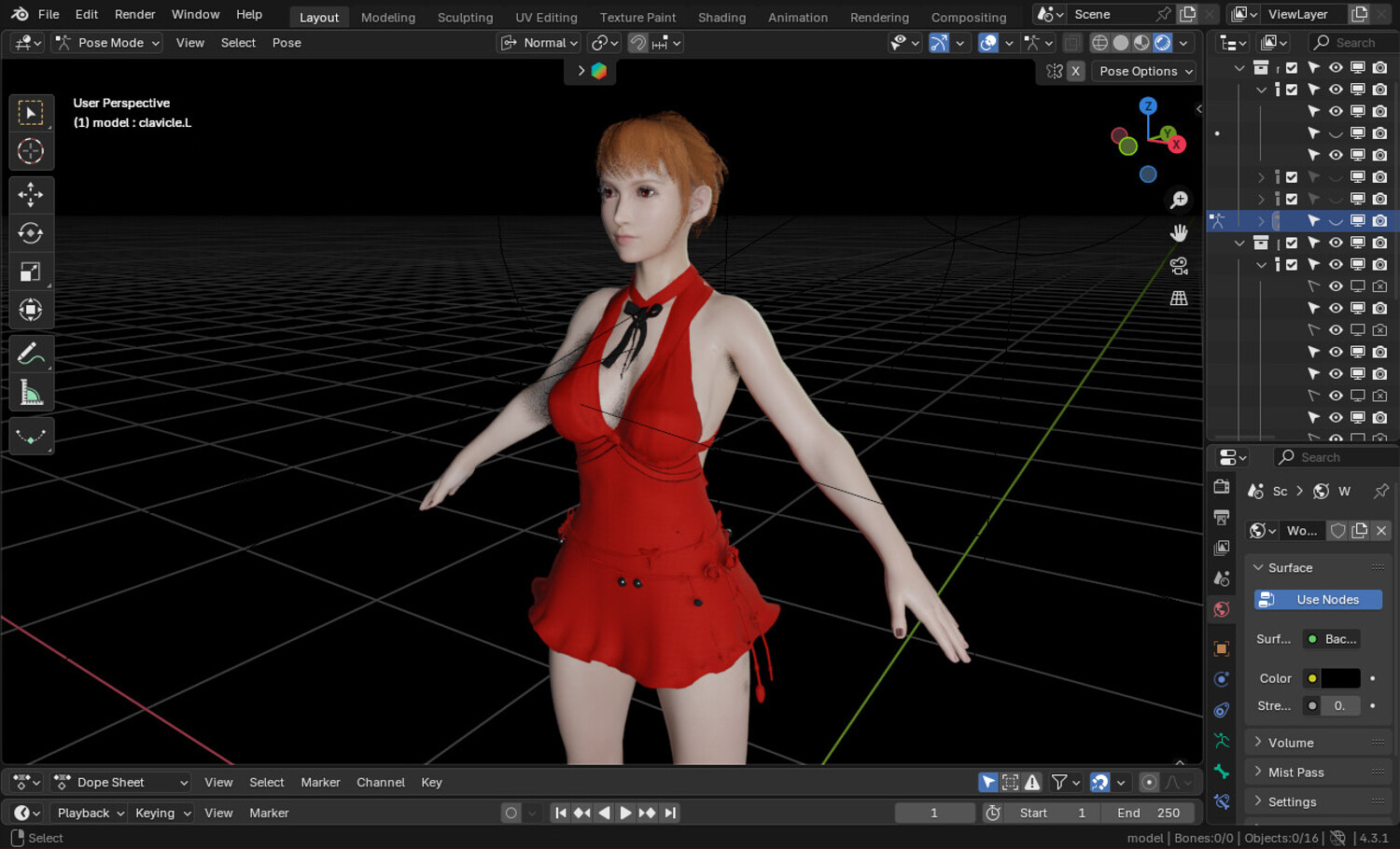 Title: Realistic Red Dress Female – Fully Rigged 3D Character (.blend)
