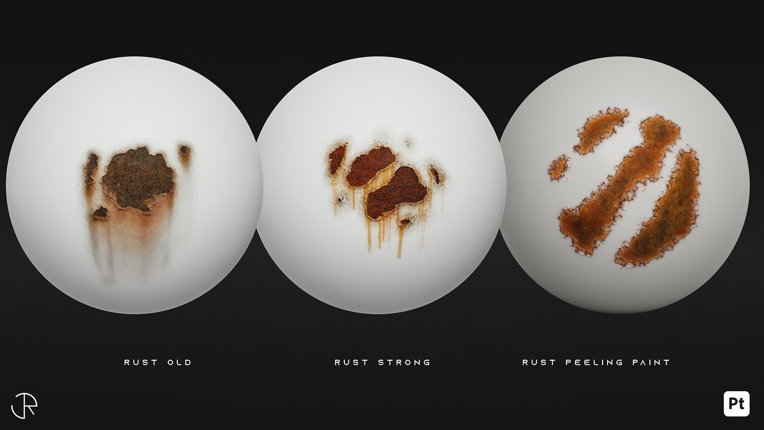 No effort texturing (drag and drop) Realistic look High-quality preview Each layer has the correct name and color Not heavy Customizable 100% made with Substance Painter All materials checked with PBR validator compatible Substance 3D Painter, version 9.1.0 and higher :Download Substance 3d Painter https://prf.hn/l/q3kjlGk/ custom shelf previews All patterns are created with shape manipulation using default textures and maps in substance painter Category:Rust material, leak material, water drops, metal torn, blood dripping, dust, dirt material