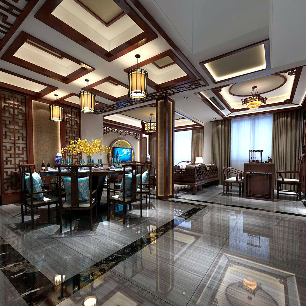 family Family European Chinese restaurant living room corridor dining table chair refrigerator kitchen sink Disinfection cabinet Kitchen cabinets decoration chandelier