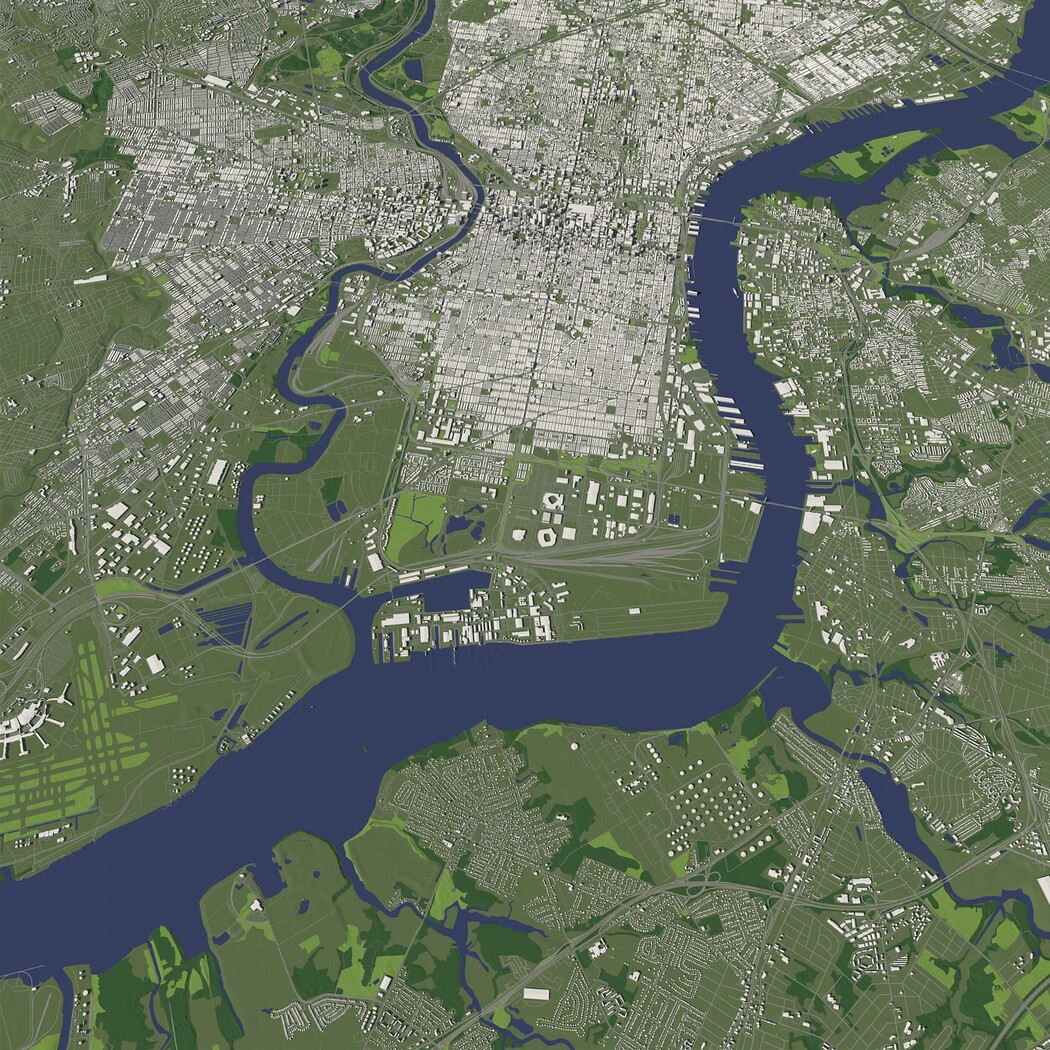 Philadelphia USA in 20 km. x 20 km. - City and urban