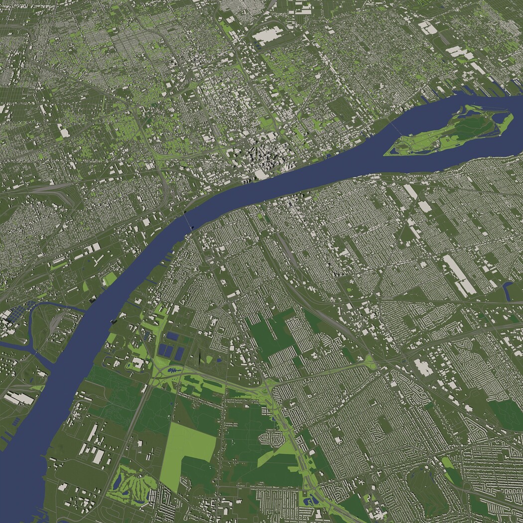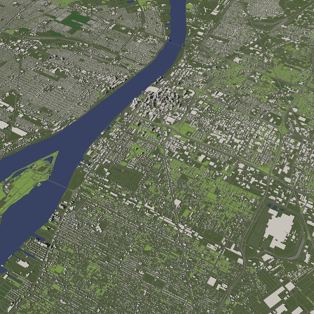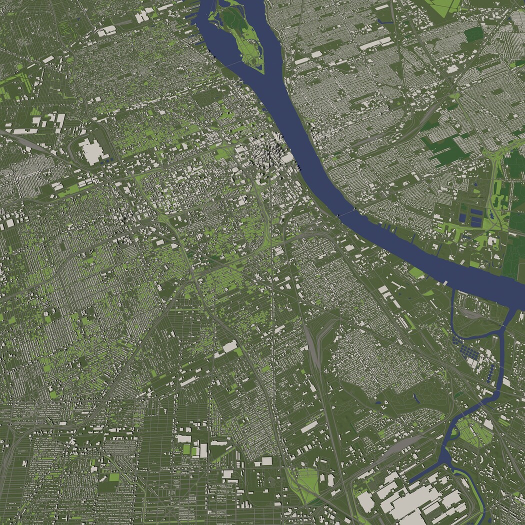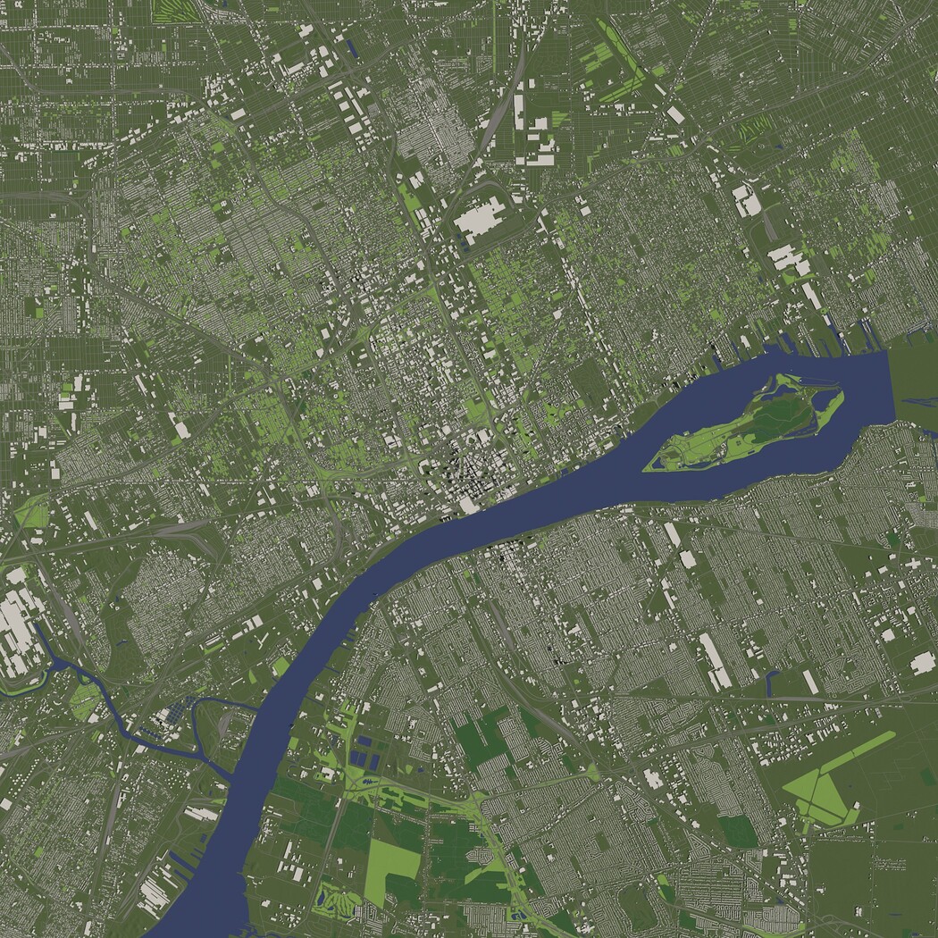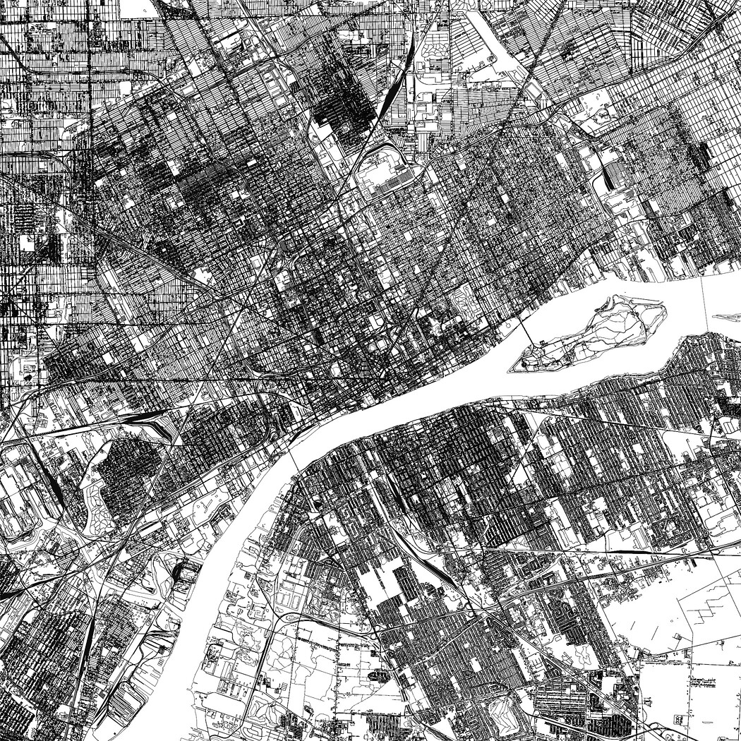 Detroit USA in 20 km. x 20 km. - City and urban