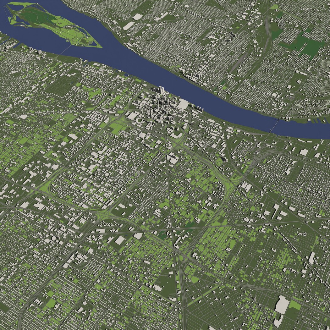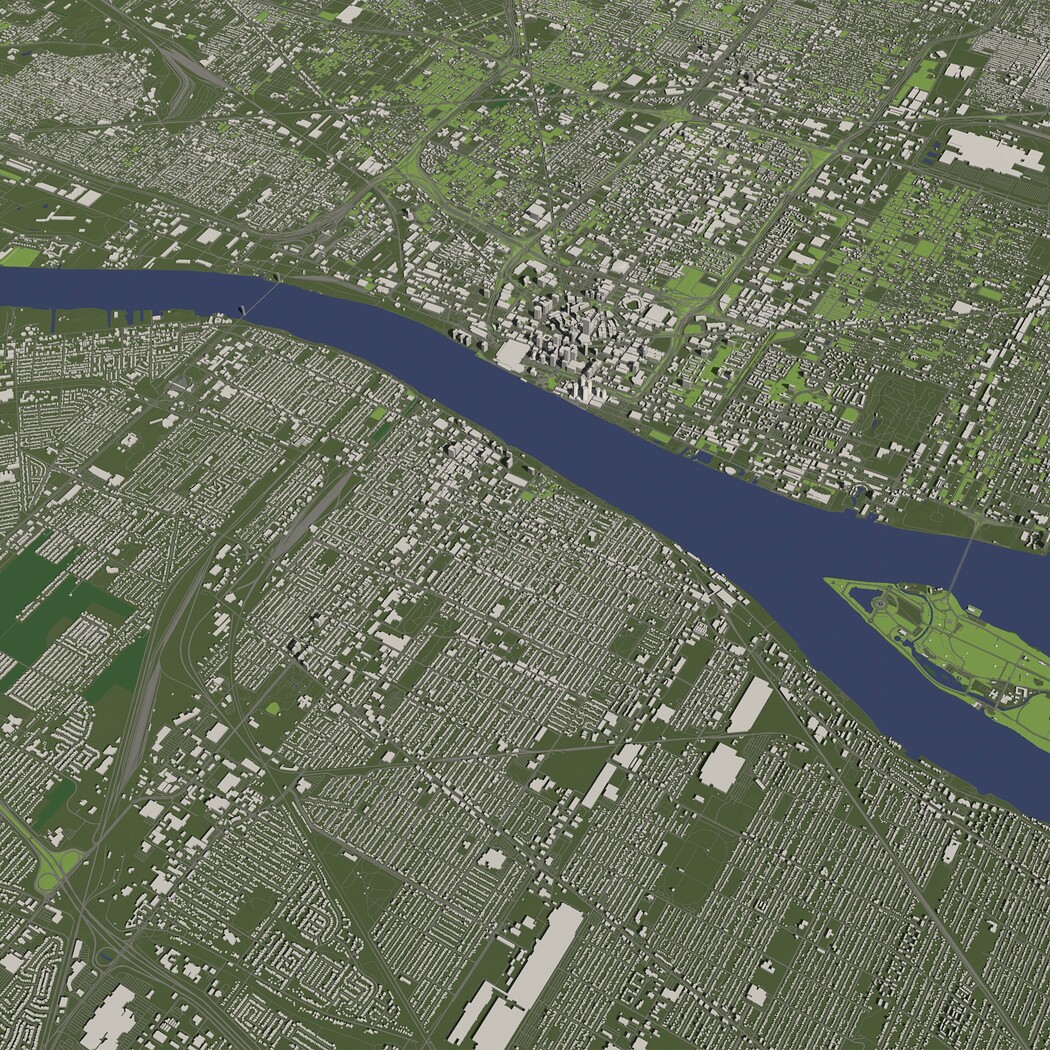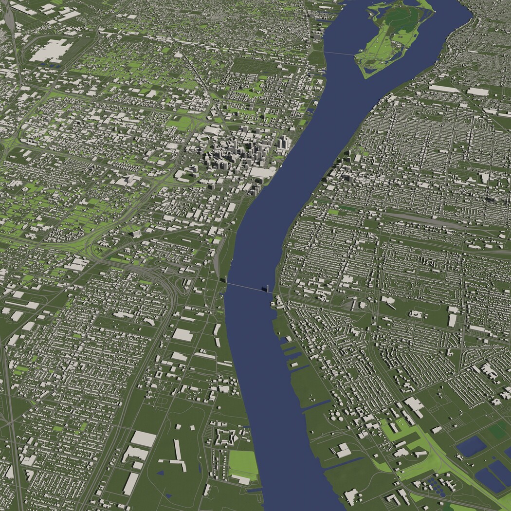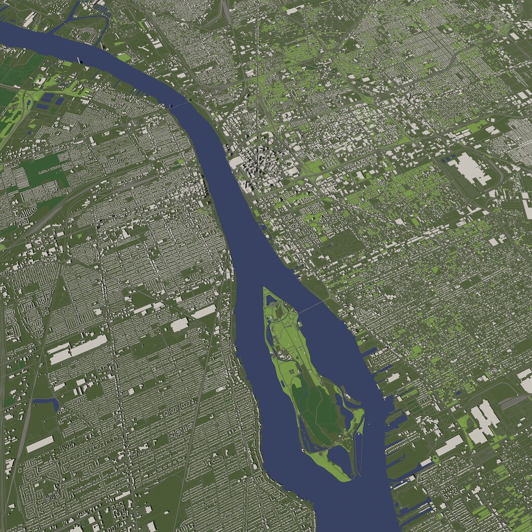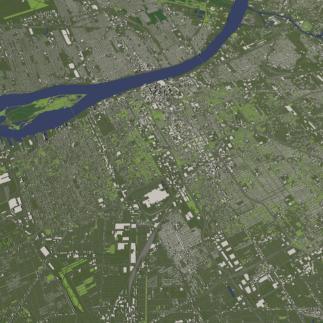 Detroit USA in 20 km. x 20 km. - City and urban