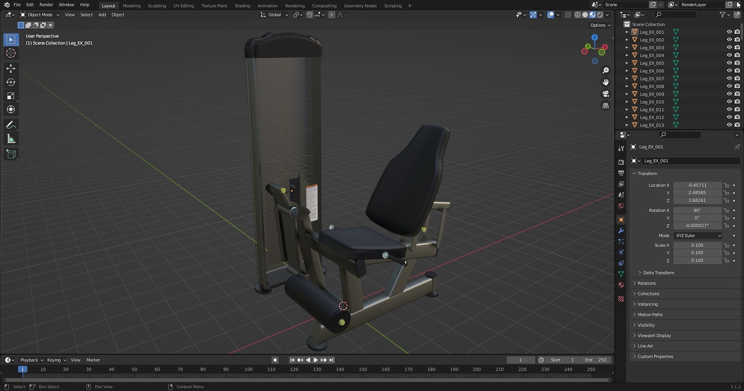 LEG EXTENSION MACHINE - Professional 3D Gym Model