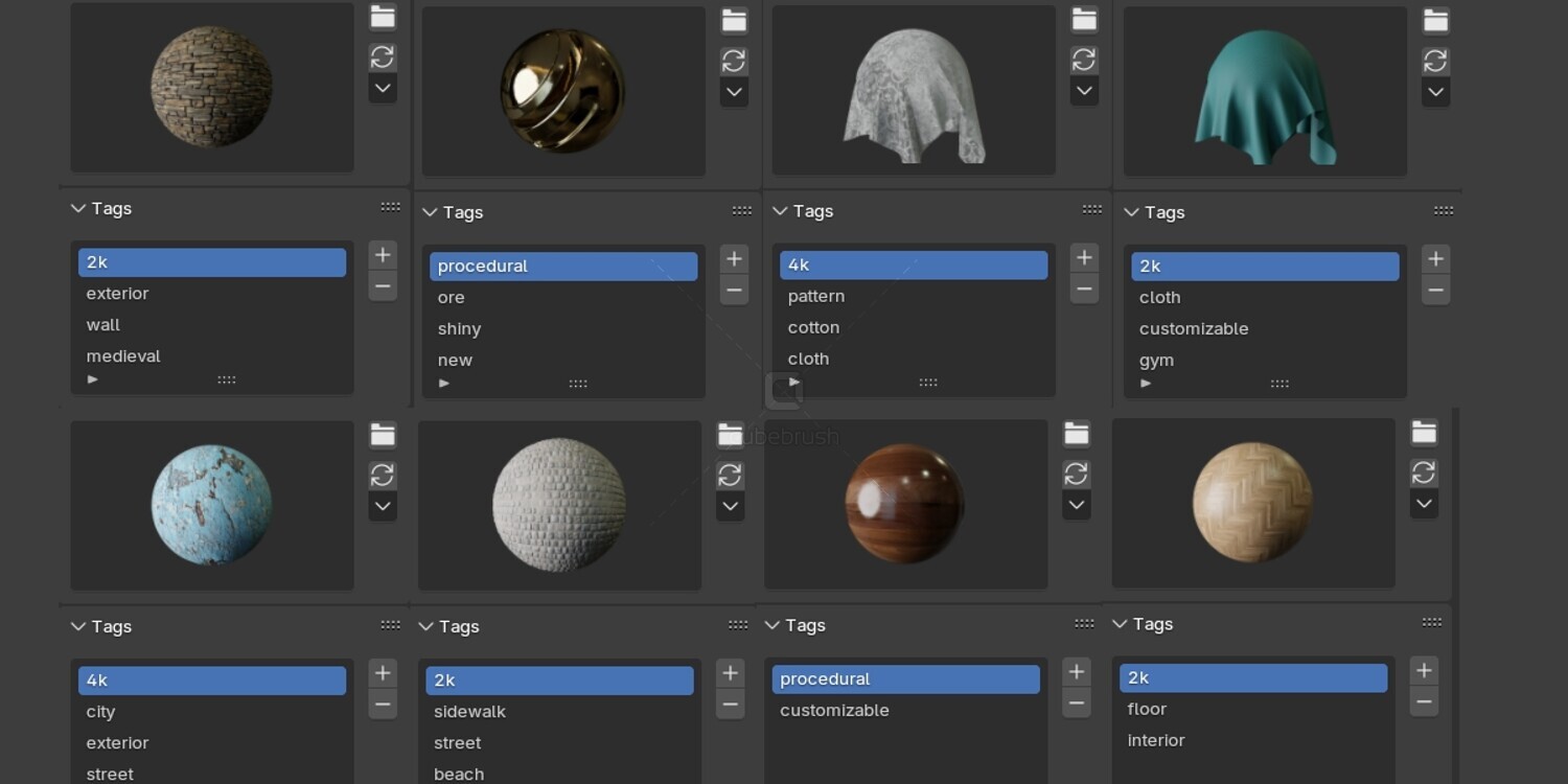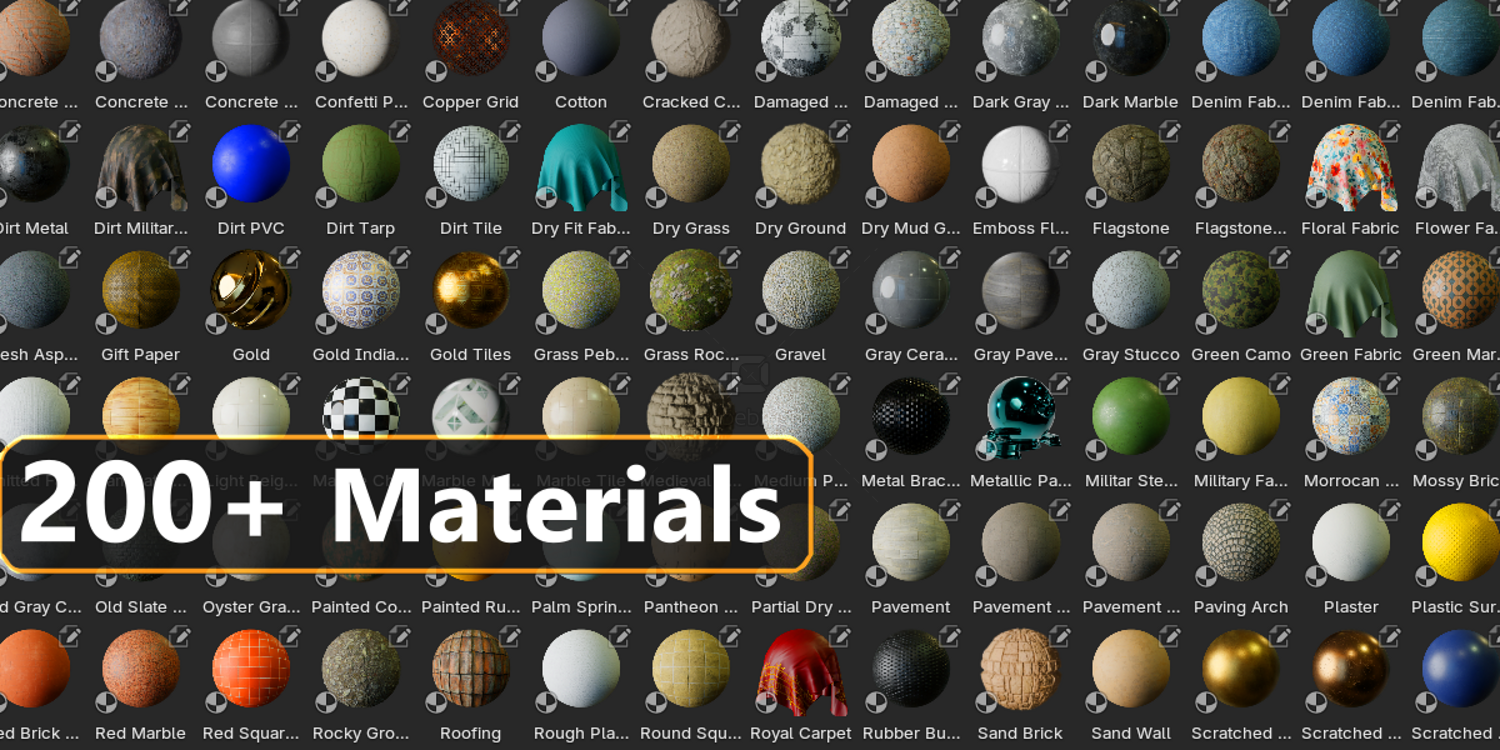 🔶 What do you get? ✔️200 Blender Materials already configured and ready for use. ✔️Base Color, Roughness, Displacement, Normal and Alpha Textures. ✔️.blend file containing all procedural materials. ✔️Compressed textures as an alternative. ✔️ All Materials are tagged! ✔️ Easily seach for 2k, 4k or procedural materials. ✔️ All files organized