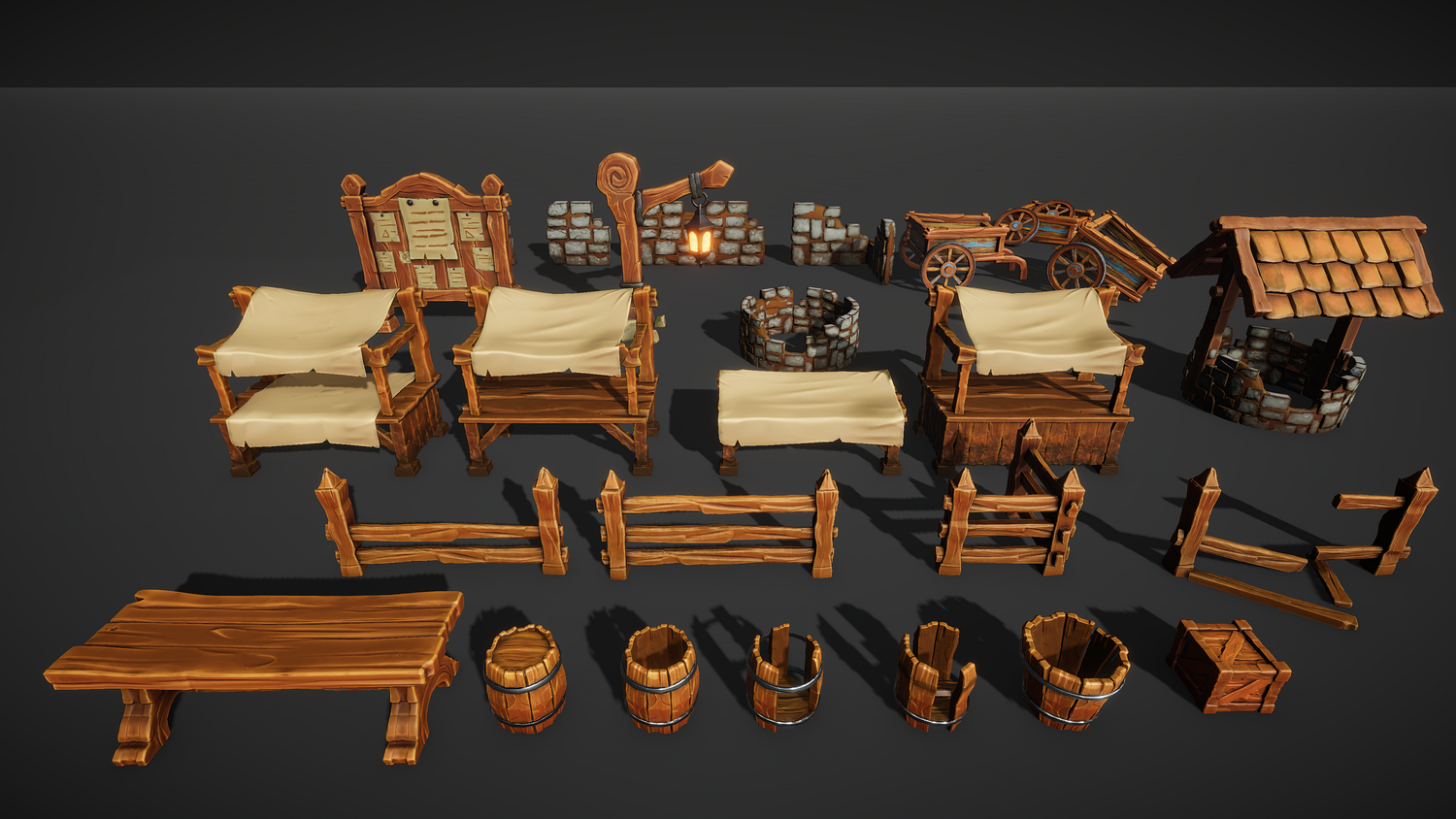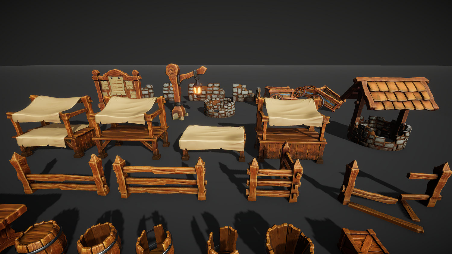 WhimsyTown Vol. 1 – Scenery Essentials is a stylized low-poly 3D asset pack designed to bring charm and warmth to your fantasy, medieval, or cozy-town game environments. This collection includes 10 unique, game-ready props, perfect for indie developers, game artists, or level designers working on stylized projects.