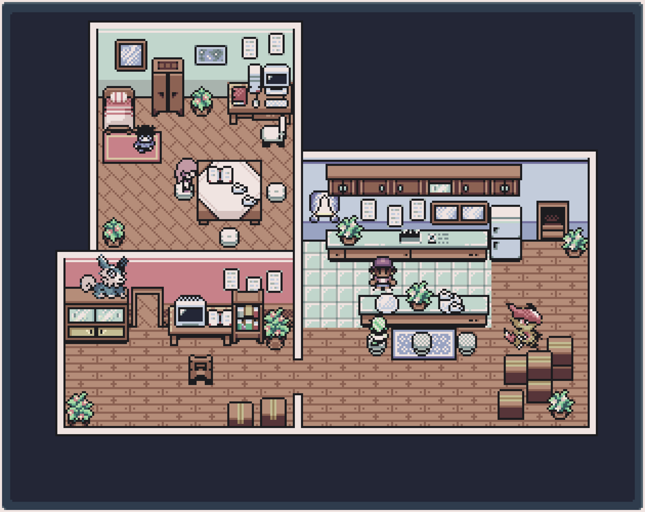 🏡 ENVIRONMENT & CHARACTERS Modular Construction Kit: Walls, Roofs, Doors, Windows for building custom Interiors and Premade Houses in your overworld. Overworld Tilesets: Complete environment assets including Bushes, Trees, Flowers, and Flowers. Protagonist/NPC Sprites: A set of Characters.