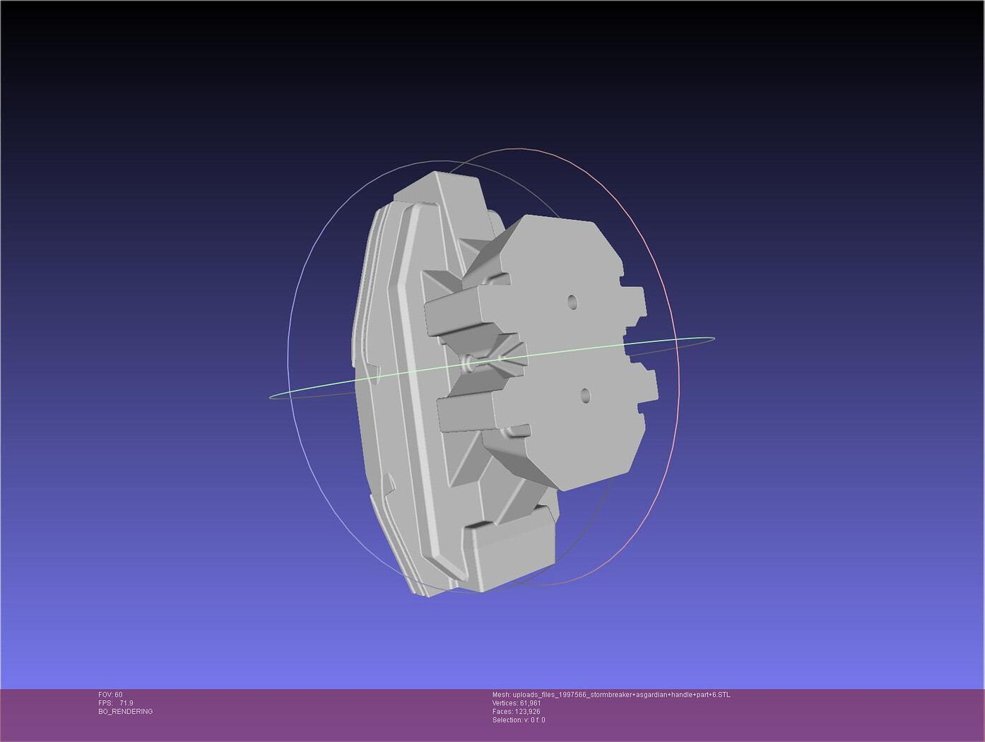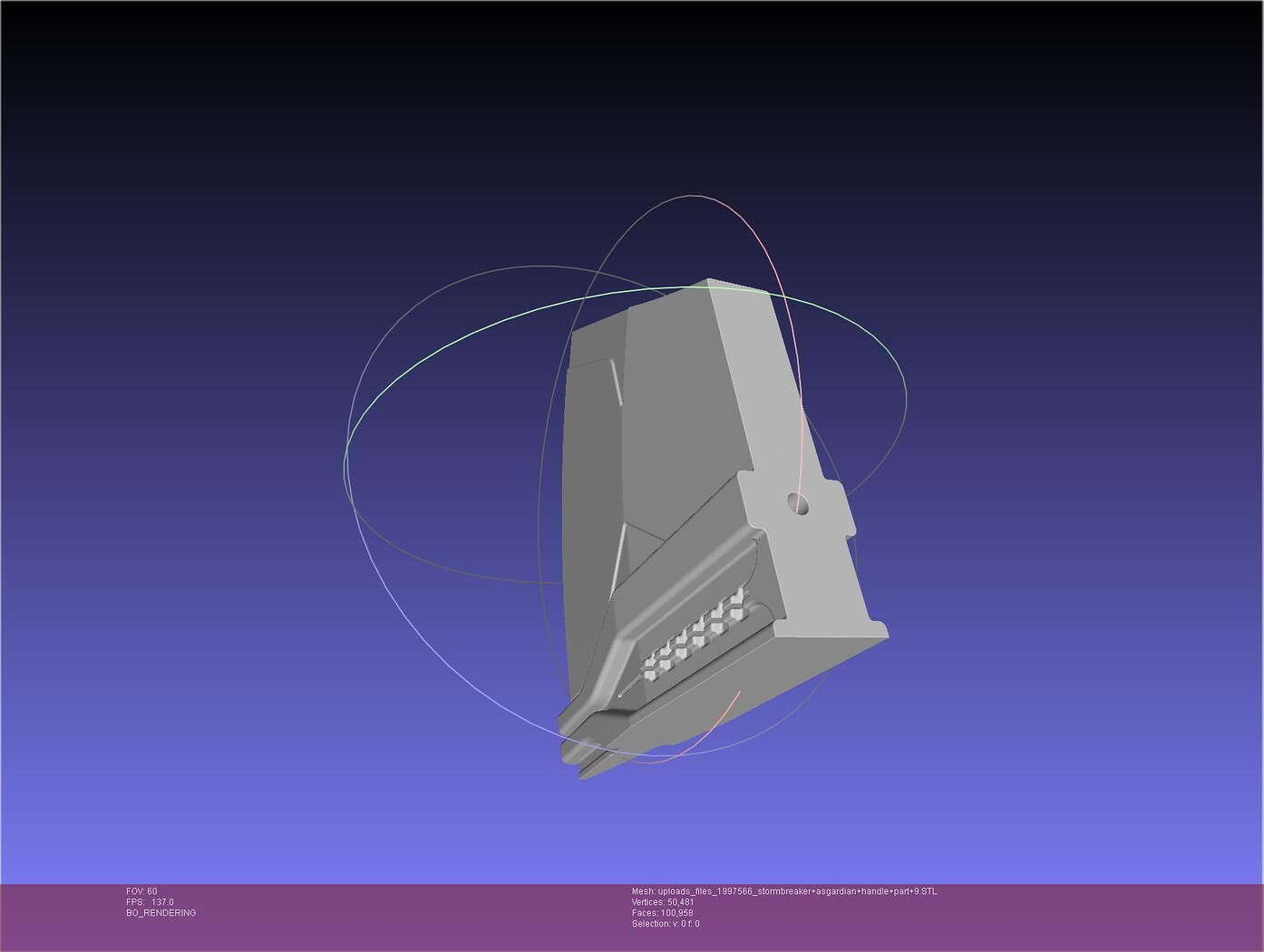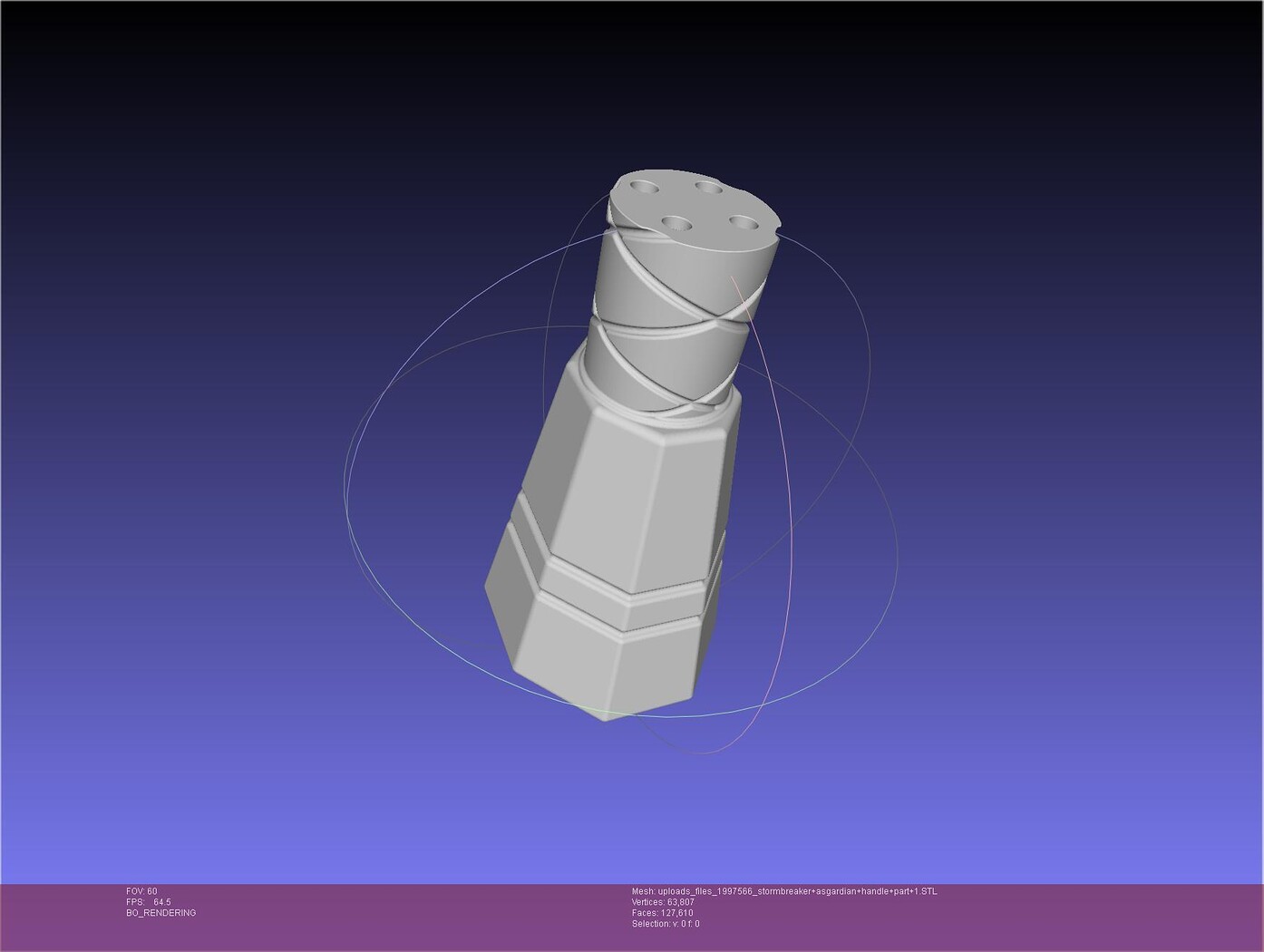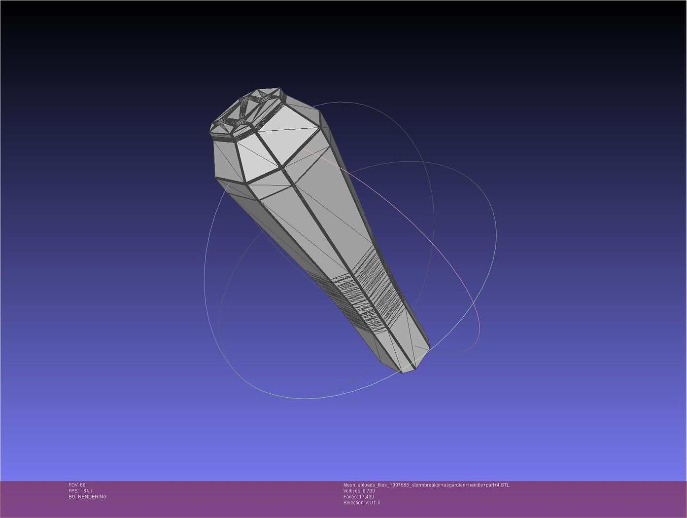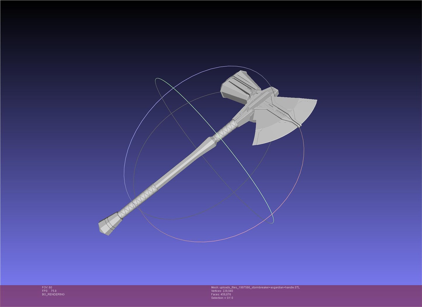 A 3D-model of the Stormbreaker axe / hammer from the Marvel universe in the concept version with an Asgardian handle it includes both a full model as well as a version split up into 10 parts that easily fit into regular 3d printers and can be assembled using 4 1050mm long and 2 440mm long 6mm rods