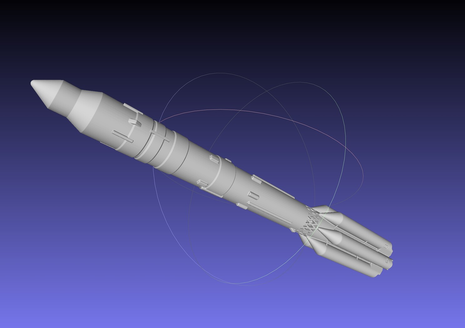 A 3d printable model of the russian Proton rocket the model is full scale but designed for being scaled down between 1/100 and 1/200 and 3d printed