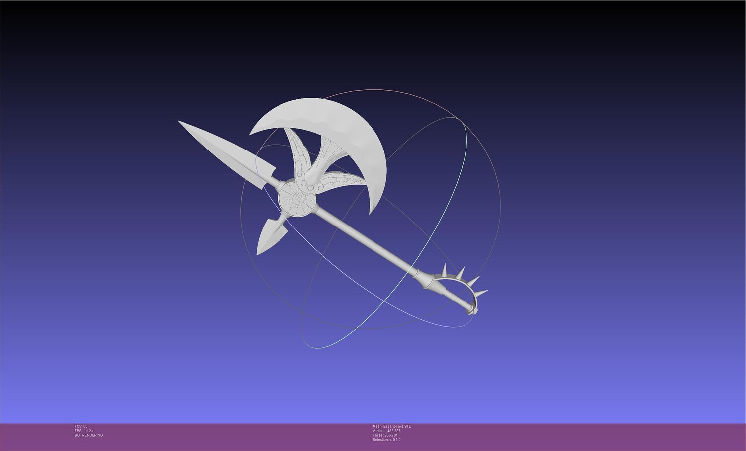 A 3d-printable model of the axe used by Escanor from the anime Seven Deadly Sins made by commission this includes both a full model and one split up into parts for easier printing and assembly using 4mm rods and pins