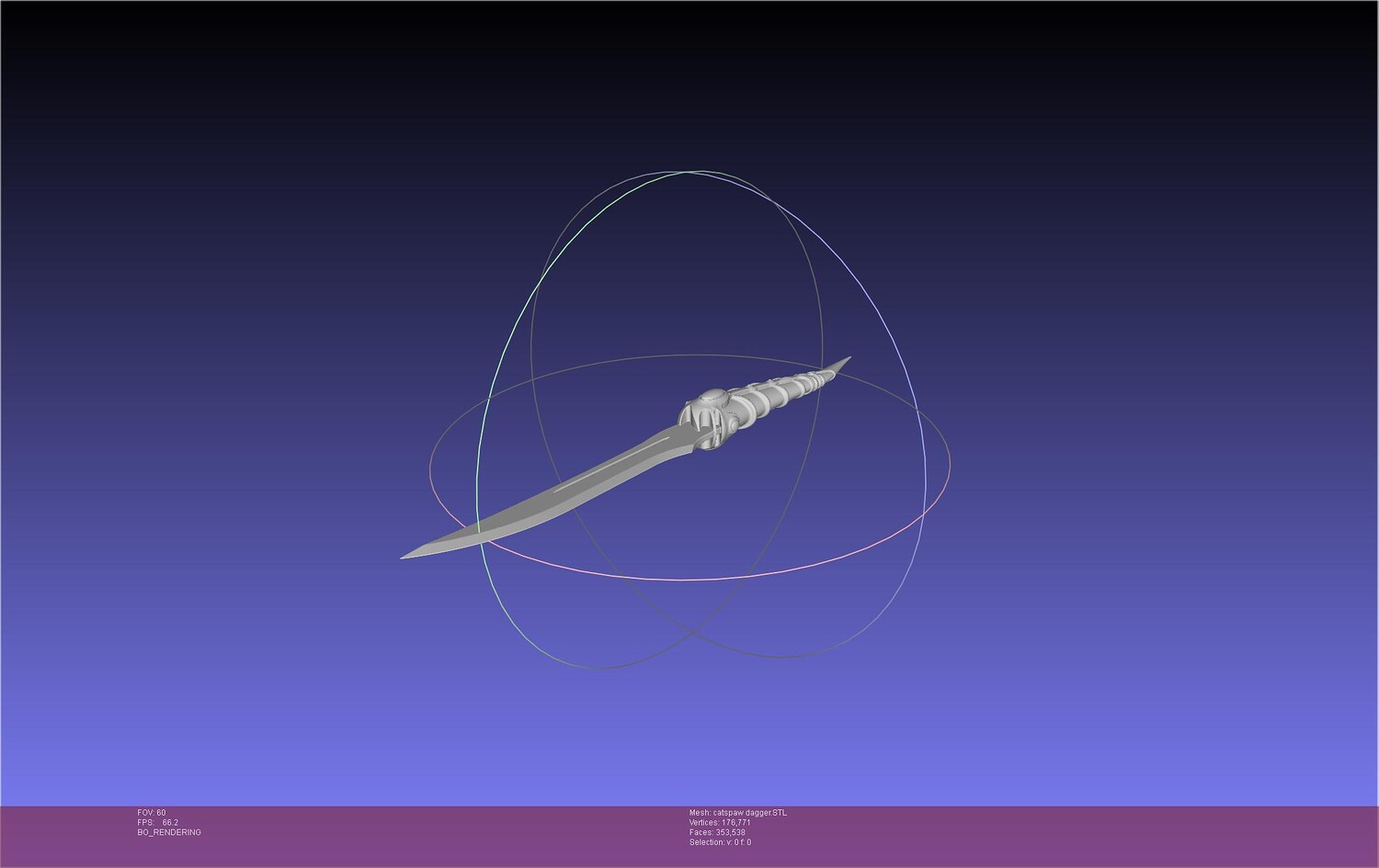A 3D-printable model of the catspaw dagger / valyrian steel dagger from the series Game of Thrones