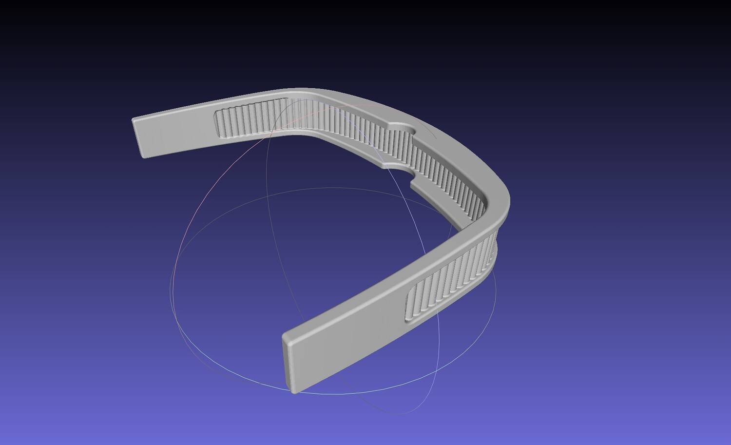 A simple 3d-printable model of the Visor seen throughout the Star Trek universe but based on the version first introduced with La Forge from "The Next Generation" the model can be scaled to fit different wearers and remains easily printable through scaling and stretching
