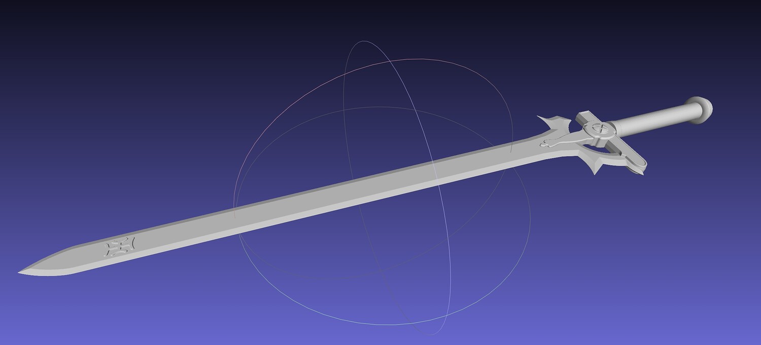 A 3D printable model of the Elucidator sword from the anime Sword Art Online the model is 1180mm long including the handel - it includes the full model as well as a version split up into 6 parts held together by two 4x1080 mm support rods it can be scaled but the support rods would have to be sized accordingly