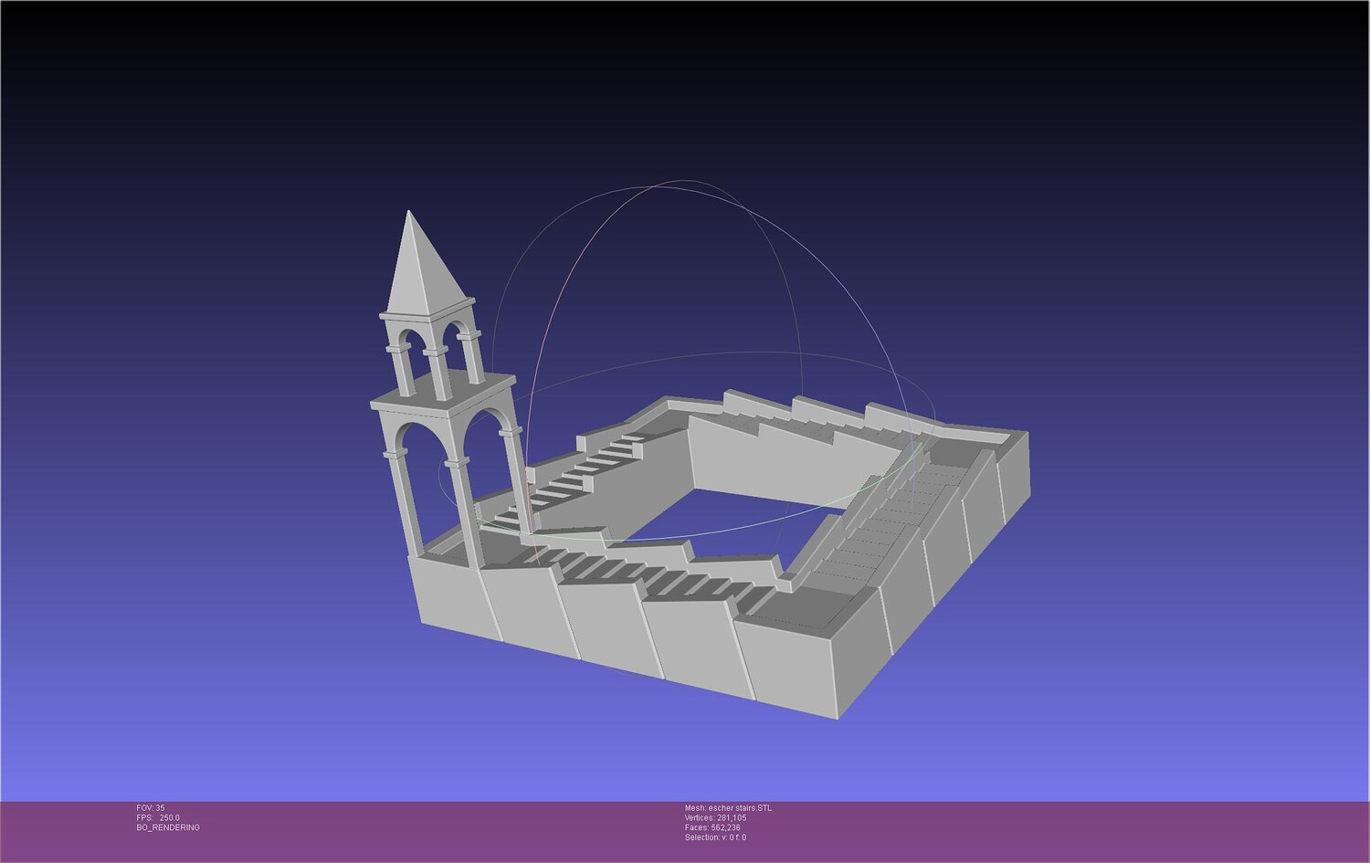 A 3d printable model of a staircase based on the famous impossible staircase in 2d