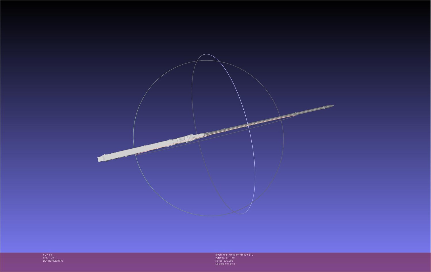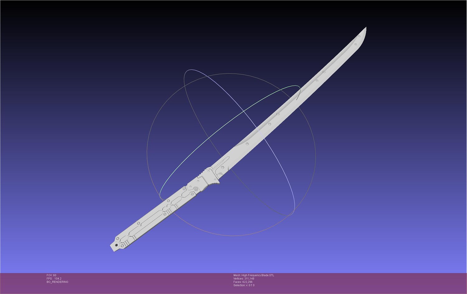 A 3d model of the high frequency blade used by Raiden from the videogame Metal Gear Rising in a slightly different version from my previous model this includes a full mdoel and one split into 7 parts for easier printing and assembly using 3mm rods the sword is about 128cm long but can be scaled and remain well printable