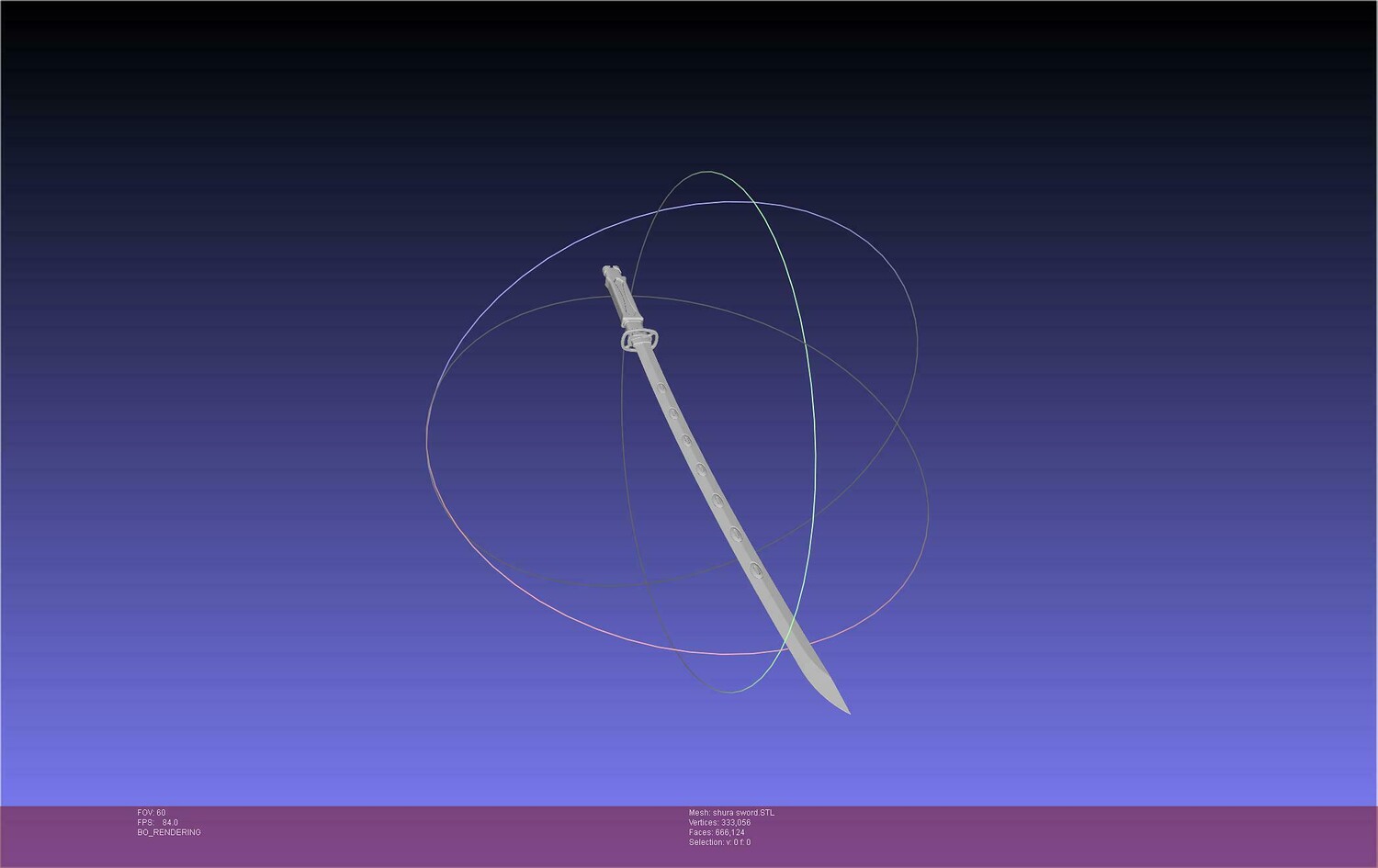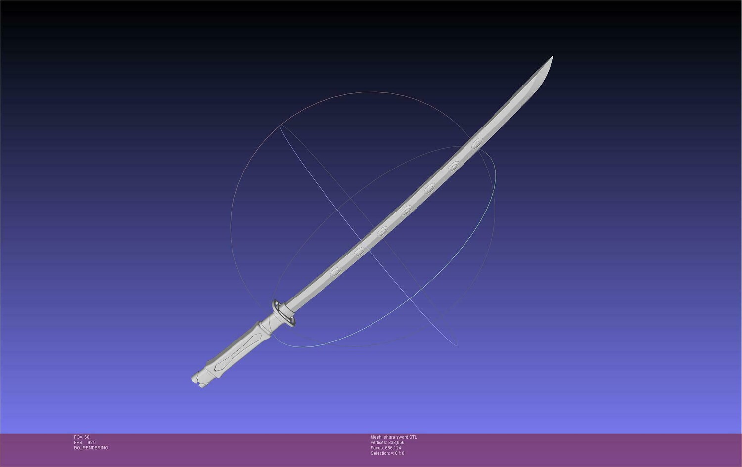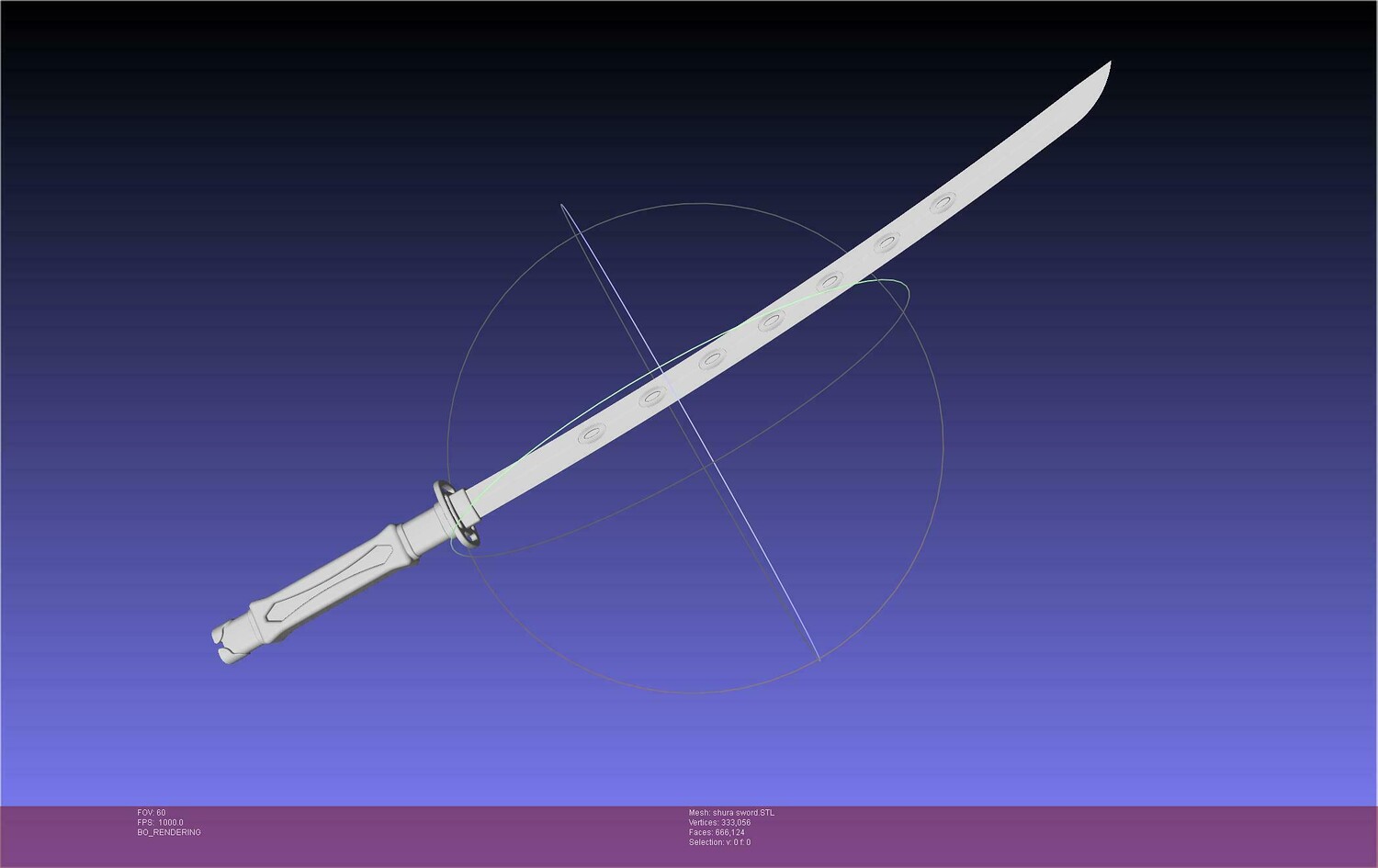 This includes a full model of the sword as well as one split into 6 parts for assembly using 4mm support rods