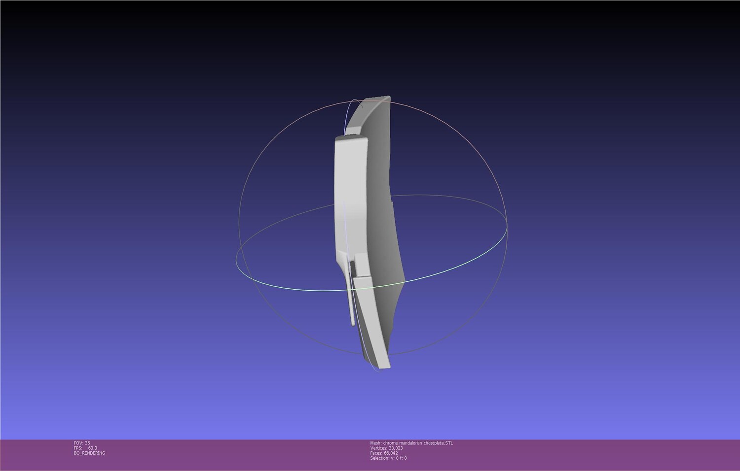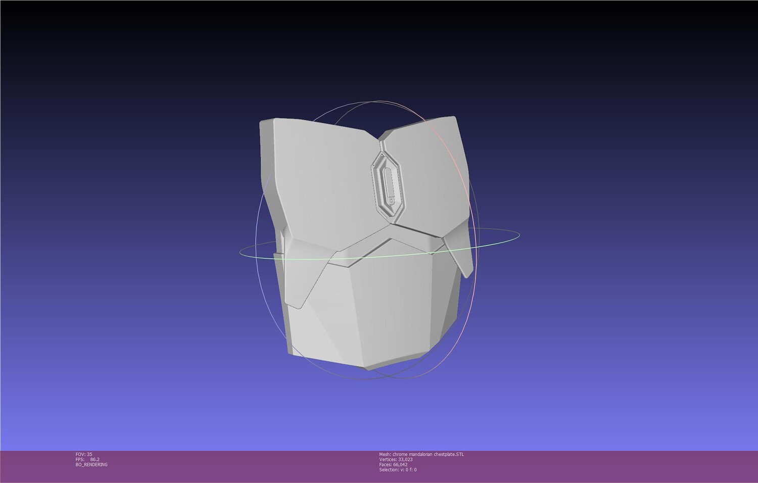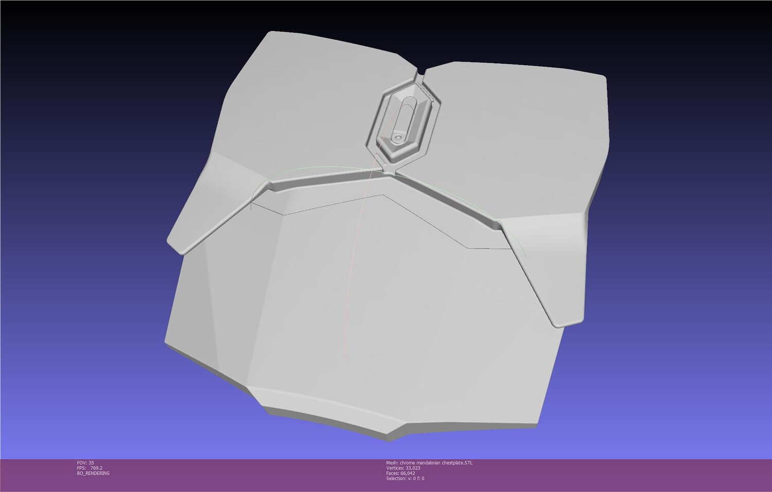 A basic printable model of the beskar chestplate from the Star Wars series The Mandalorian made by commission