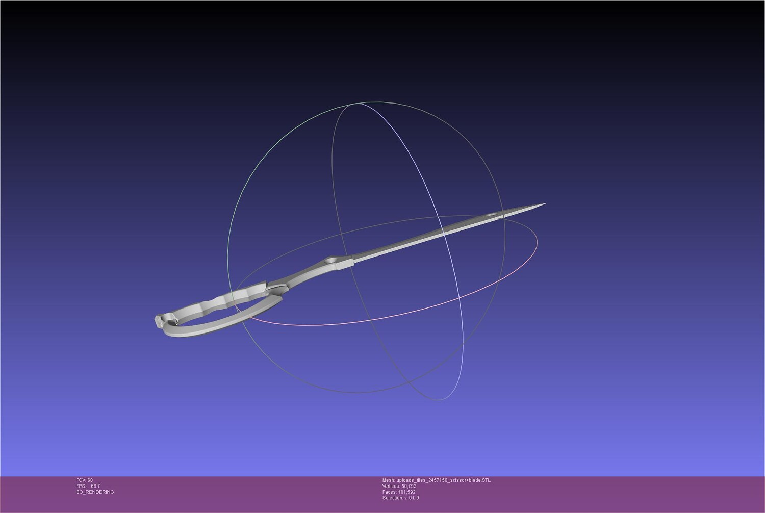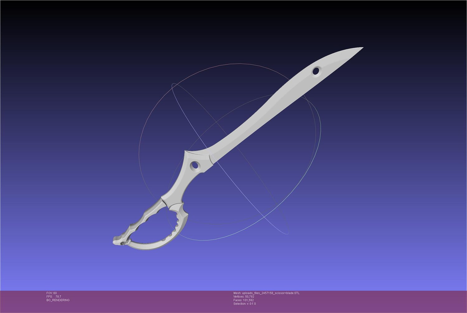 A 3D-printable model of the scissor blade from the anime kill la kill this includes both the full model and one split up into seven parts for easy printing and asembly using 4mm metal pegs
