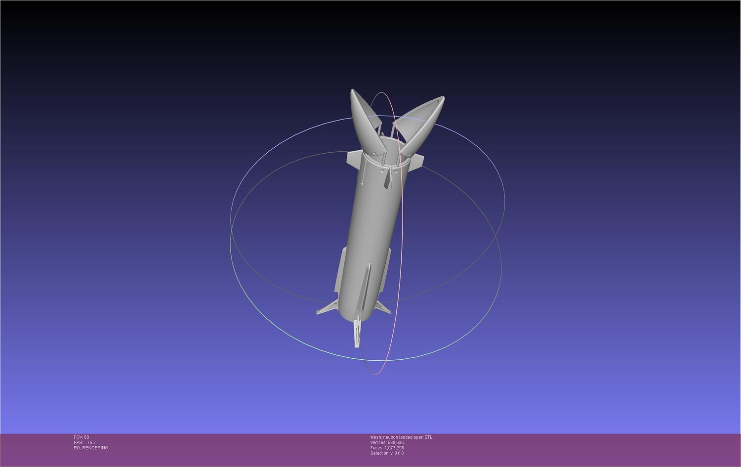 It includes the closed rocket as well as configurations with deployed landing legs and an open nosecone and an upperstage with an example payload