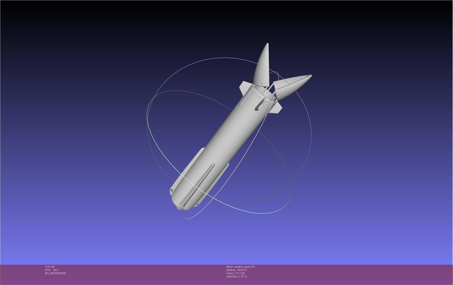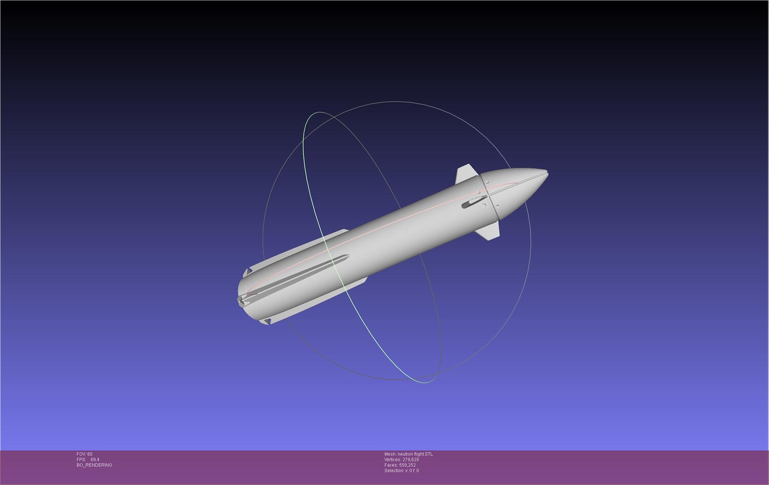 A model of the updated version of the Neutron rocket in development by Rocket Lab