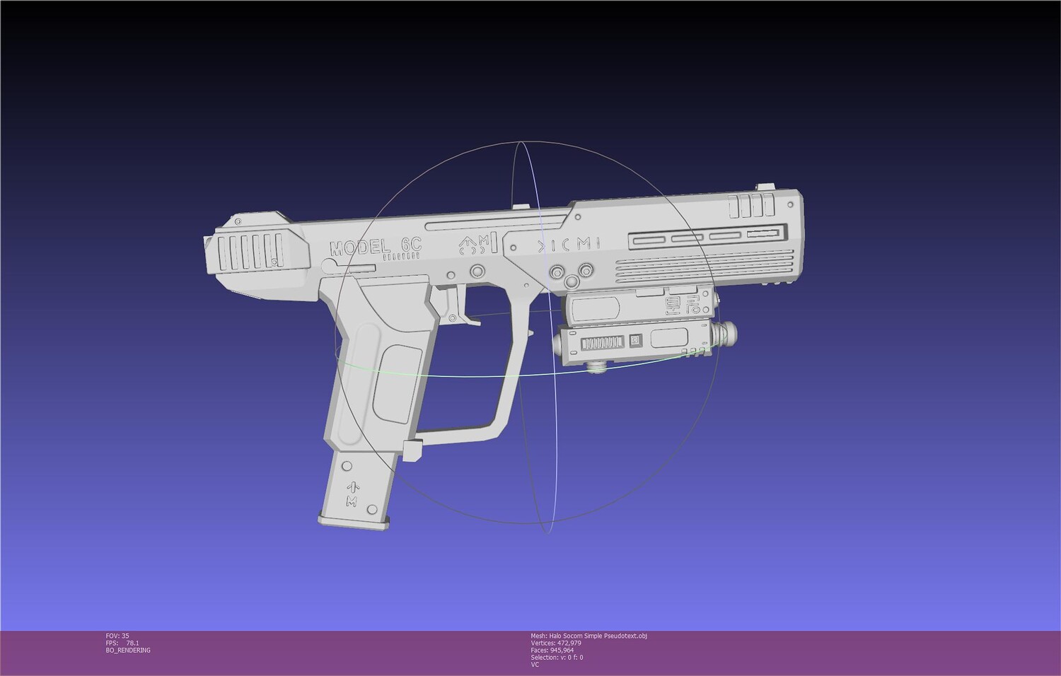 A basic model of the Socom pistol from the videogame Halo ODST made by commission this includes both a version with no text and one with simplified engraved text